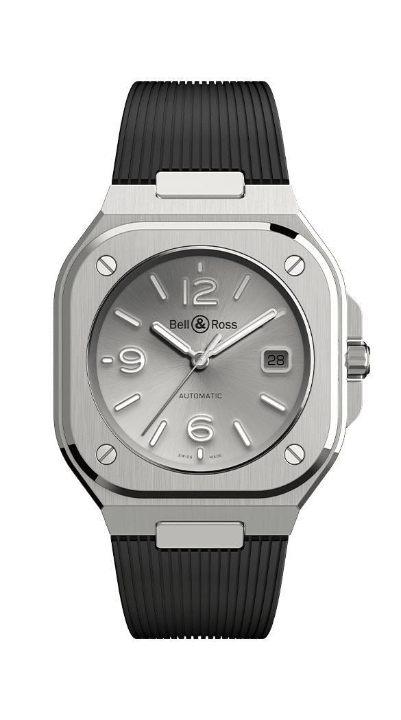 The BR-05 belongs to the family of watches with an integrated bracelet: the bracelet fuses with the case to create a unified piece.