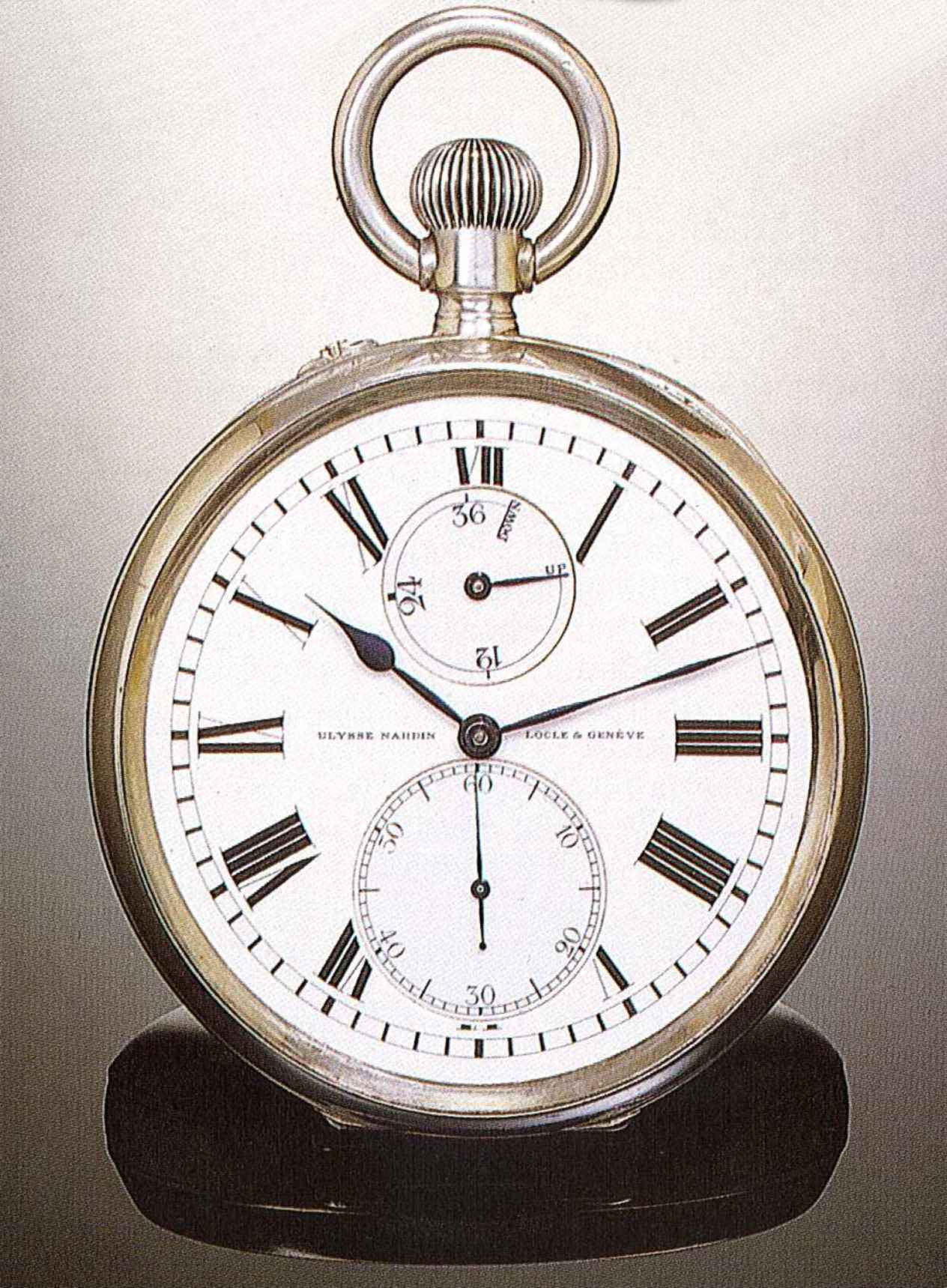 Ulysse Nardin, Locle & Geneve, N°3725, case No. B5620, March 1912. Fine silver cased keyless deck watch with 36 hour revolving power reserve indicator, awarded a Bulletin of First Class for the timing contest organised at the Astronomical Observatory of Neuchatel in 1913.