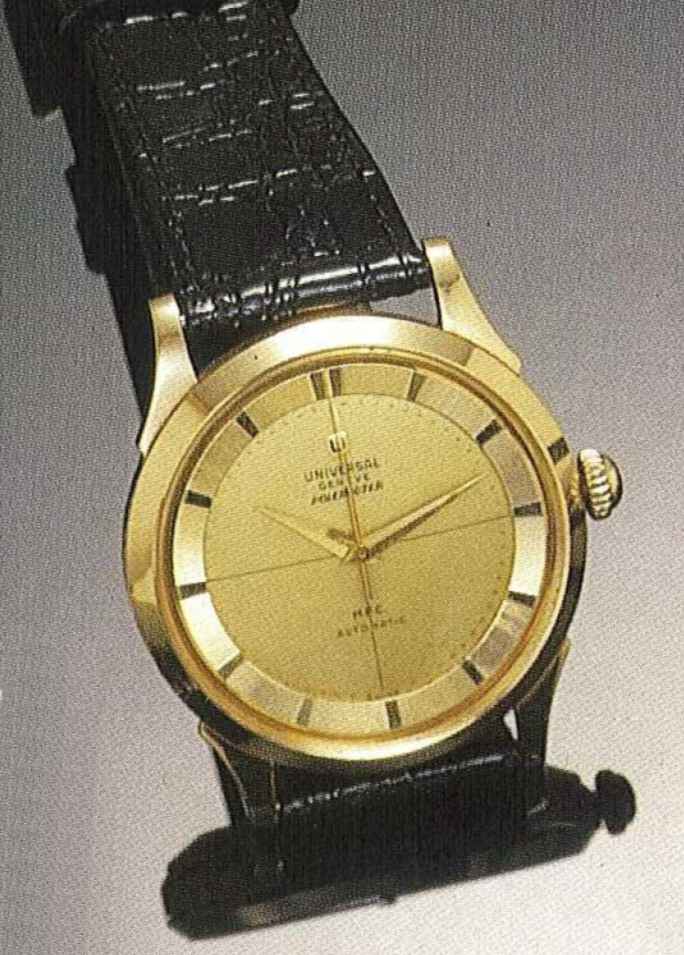 Universal Genève, "Polerouter H. P. C. Automatic", 1950's. Fine centre second, self-winding, 18 ct. gold gentleman's wristwatch.