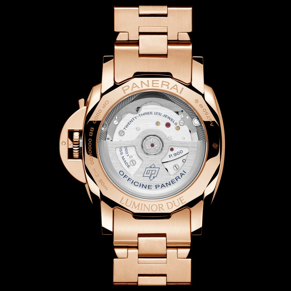 - Strap: Polished and brushed Panerai Goldtech™ with OP logo engraved