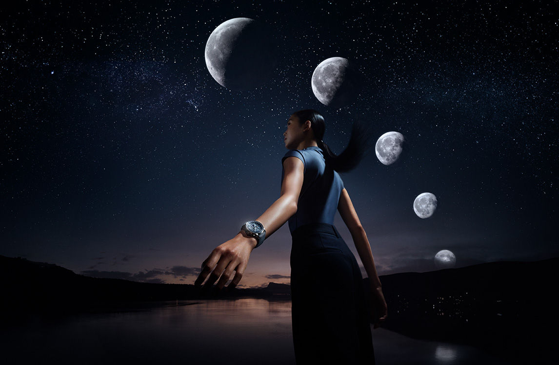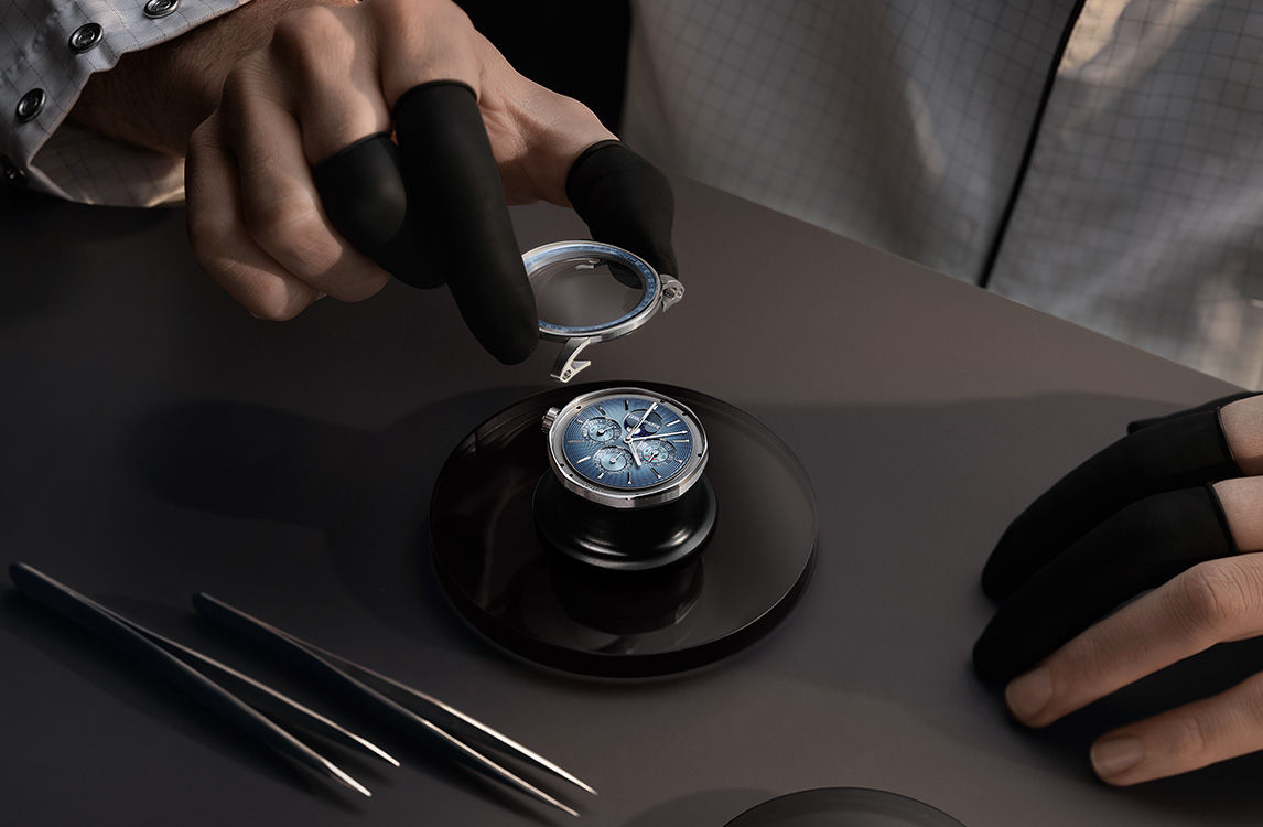 The smoked blue embossed dial combines a matching inner bezel and tone-on-tone subdials with 18-carat white gold hour-markers and 18-carat white gold hands with luminescent material.
