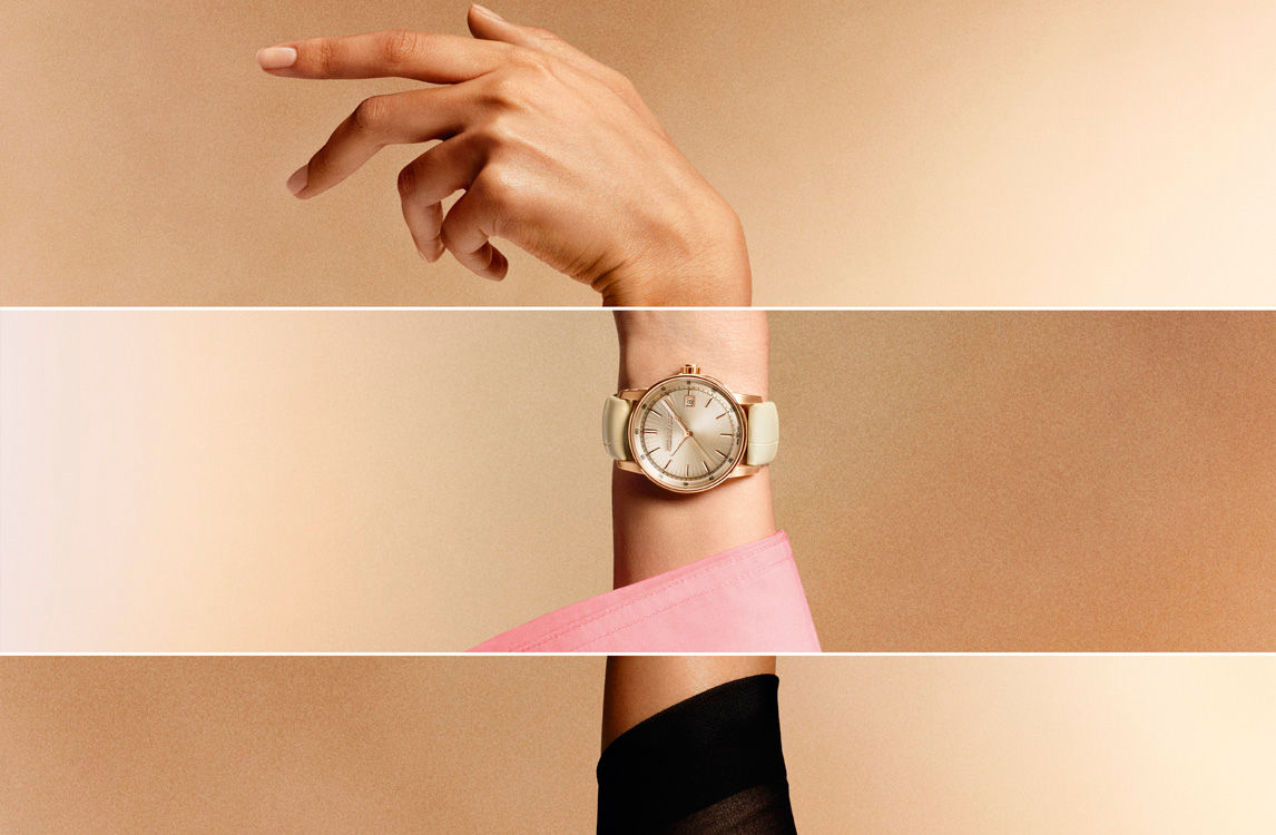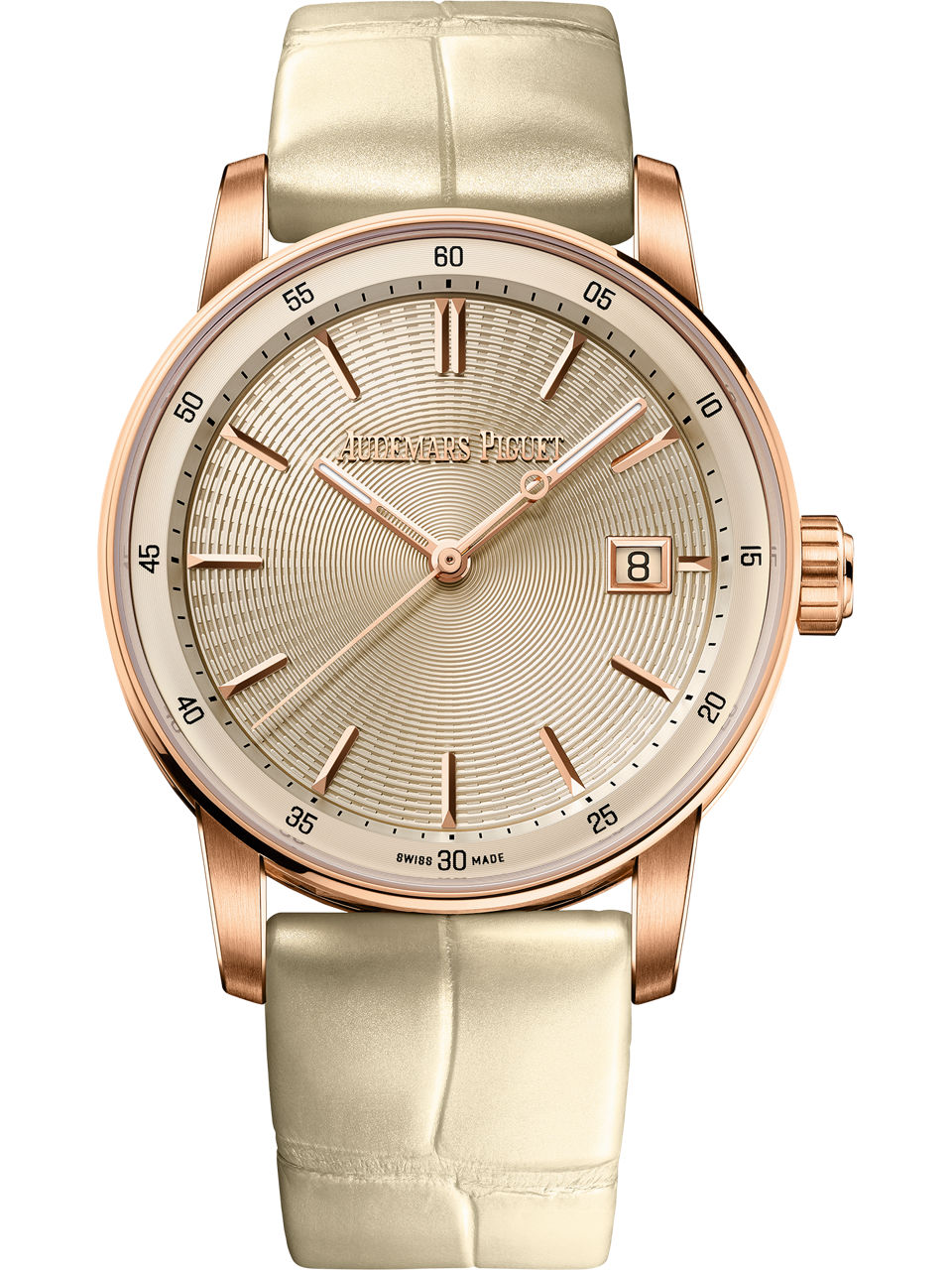 Presented in a new 38 mm sized case, formed of 18-carat pink gold, this model sports a beige dial featuring the new signature motif and comes on a matching alligator strap, delivering an eminently elegant ensemble.