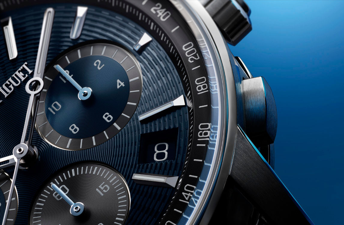 - Functions : Flyback chronograph, hours, minutes, small seconds and date.