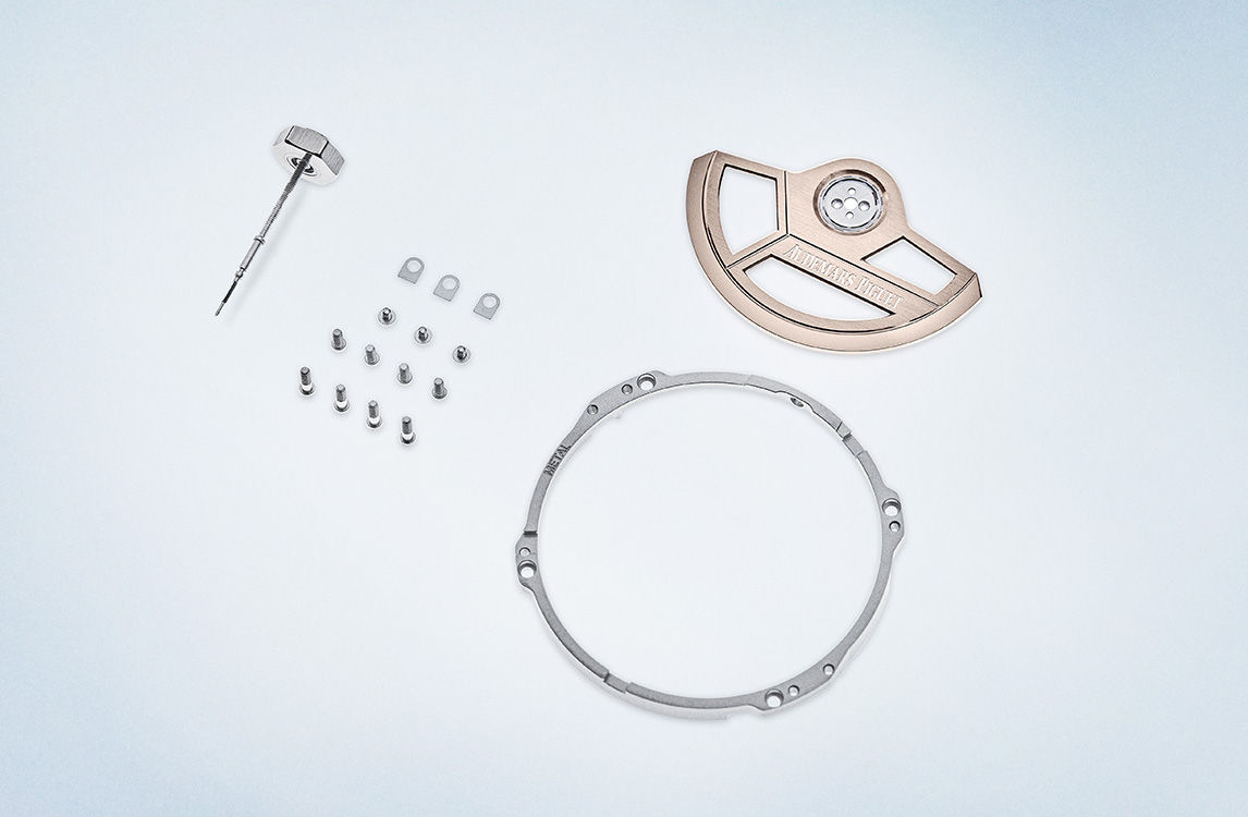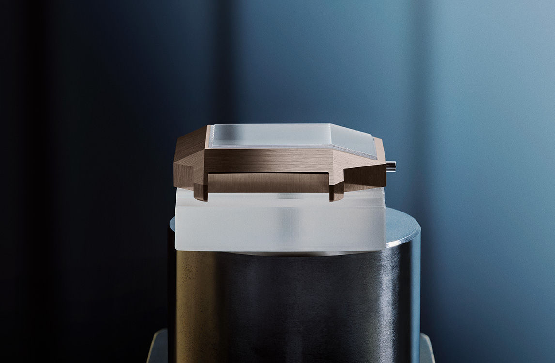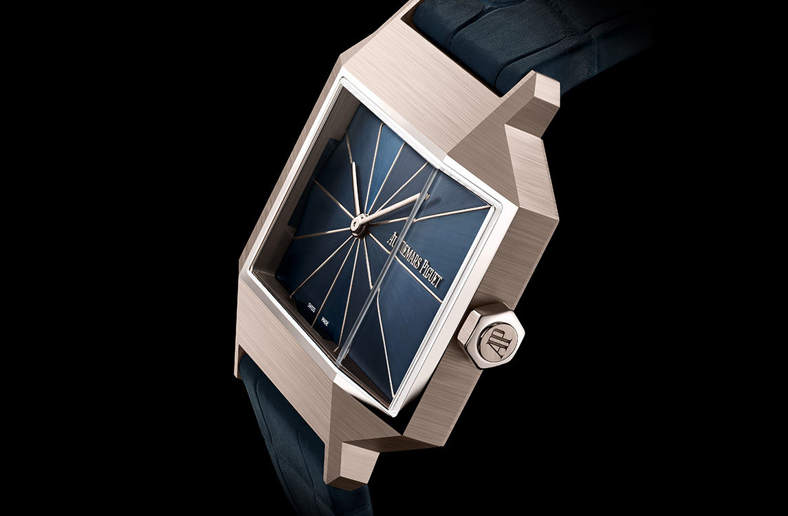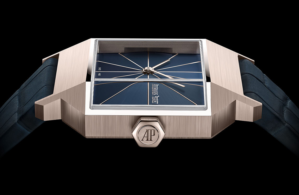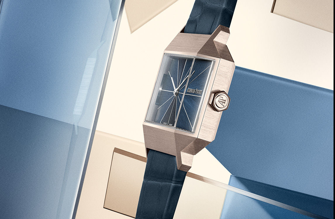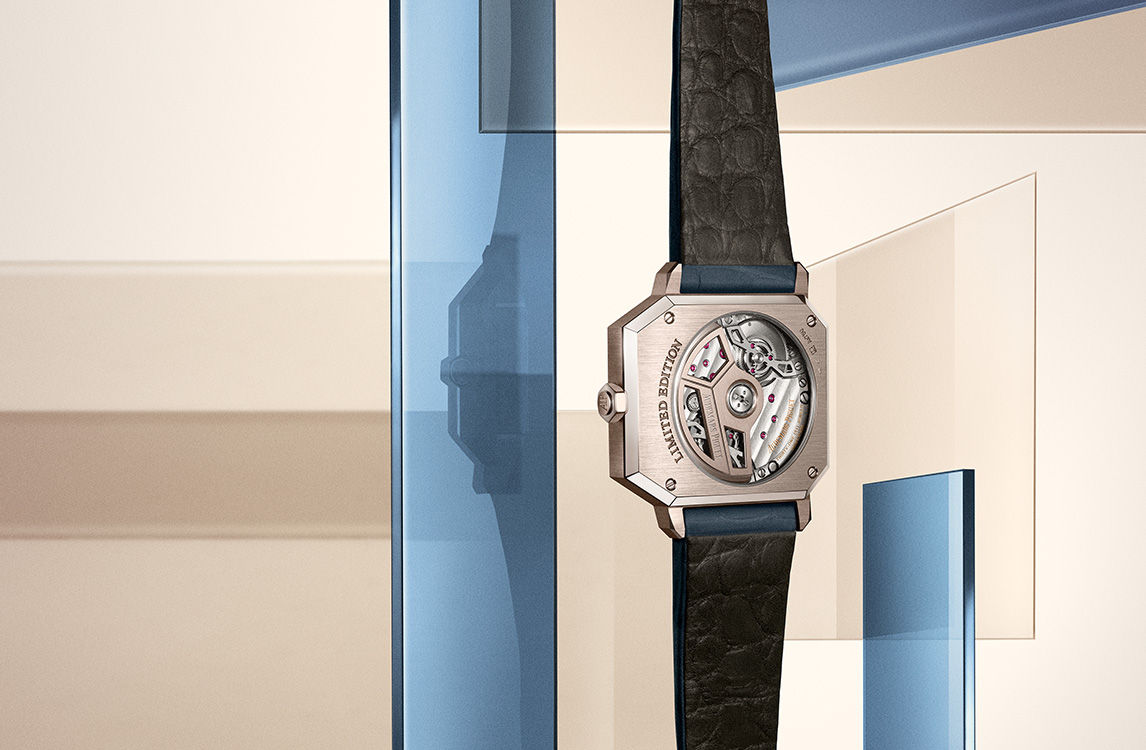 A tribute to a timepiece from 1960, this limited edition features an asymmetrical case crafted in sand gold, a new 18-carat gold alloy that comes to life in the light. It is enhanced by a parted blue dial with a unique brushing finish.