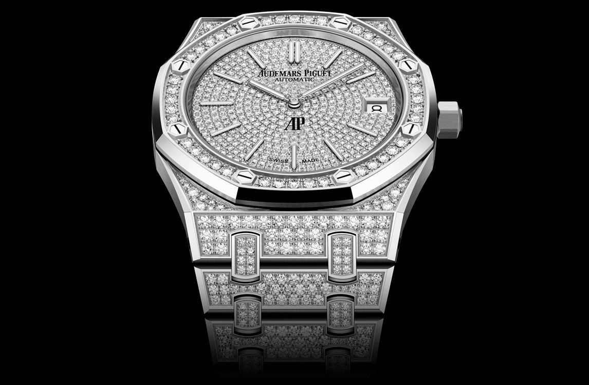 Diamonds take centre stage on this fully-set Royal Oak "Jumbo" that provides a continuous and seamless flow of brilliance from the watch face to the bracelet.