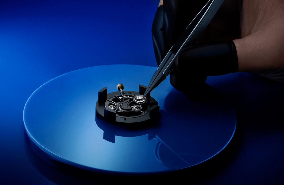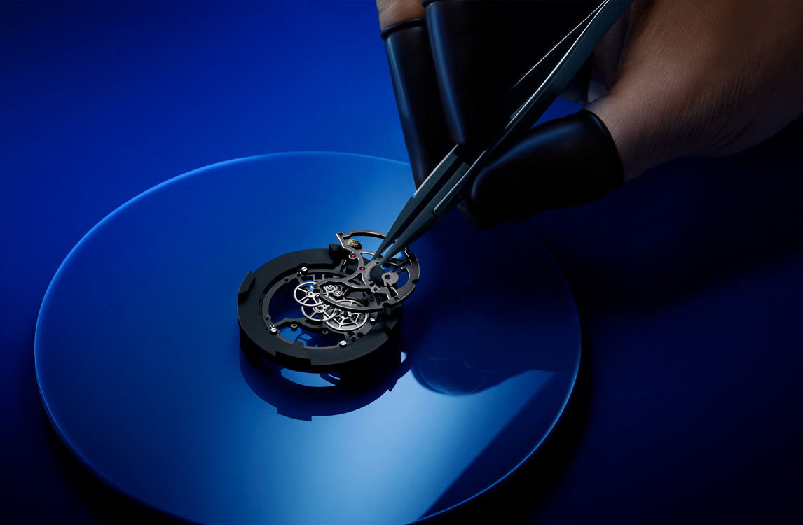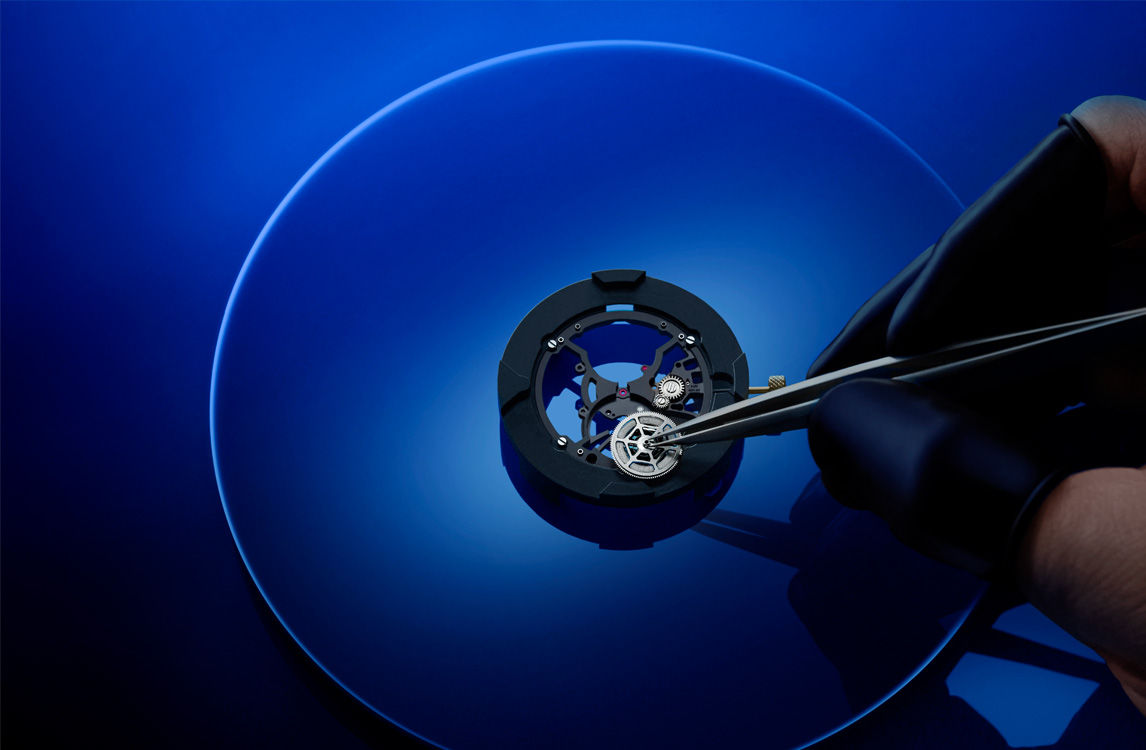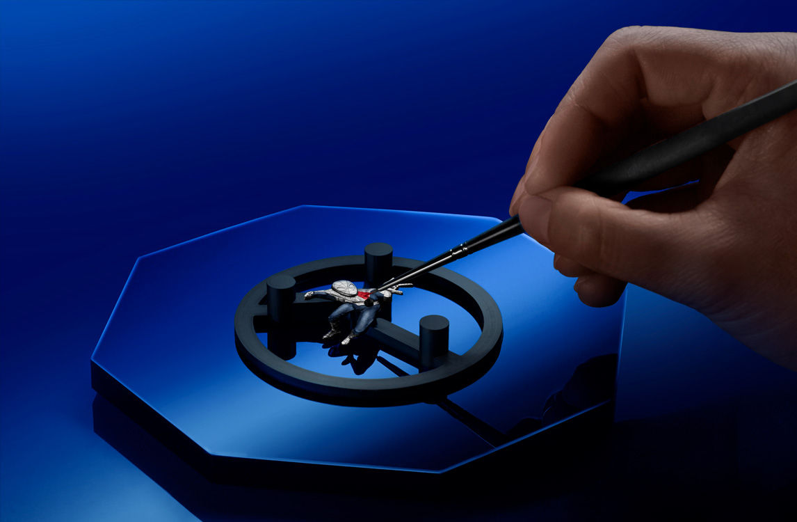 A feat of skeletonization, this second Marvel collaboration pays tribute to Spider-Man, who appears to be suspended from the dial as he passes through the tourbillon mechanism.