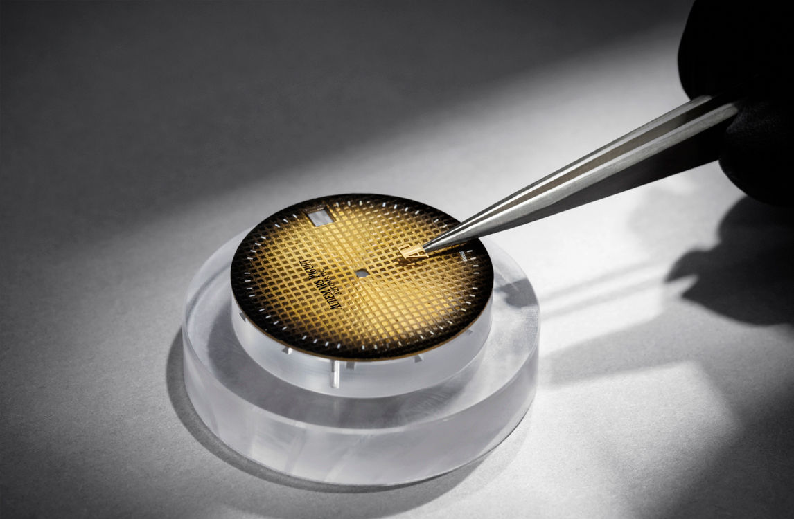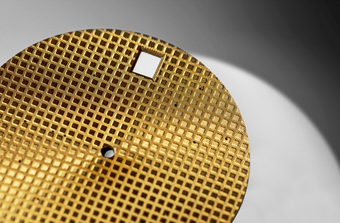 This “Jumbo” model accentuates the Royal Oak’s original codes with a yellow gold case and bracelet enhanced with a smoked yellow-gold-toned “Petite Tapisserie” dial. It houses the latest selfwinding movement, Calibre 7121.