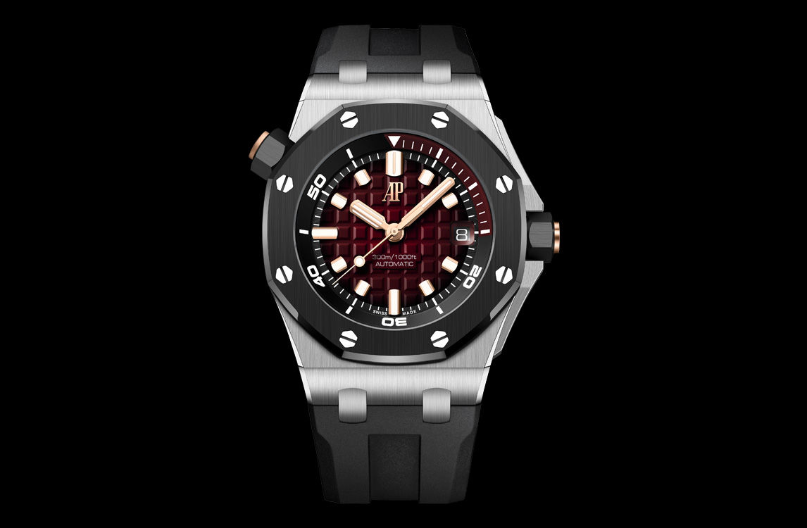 Black rubber strap with 18-carat white gold AP folding clasp. Additional red rubber strap.