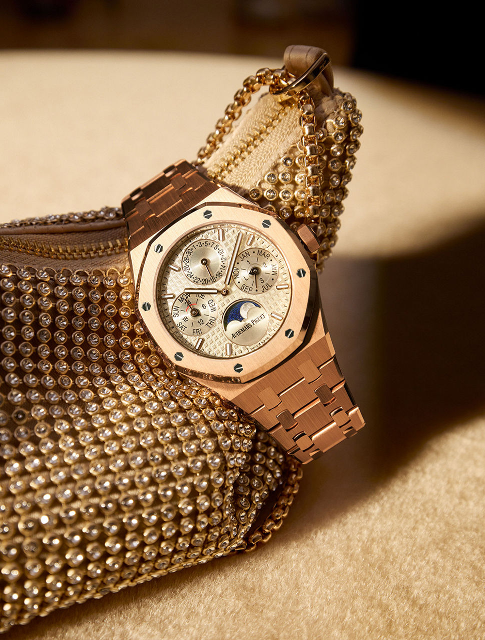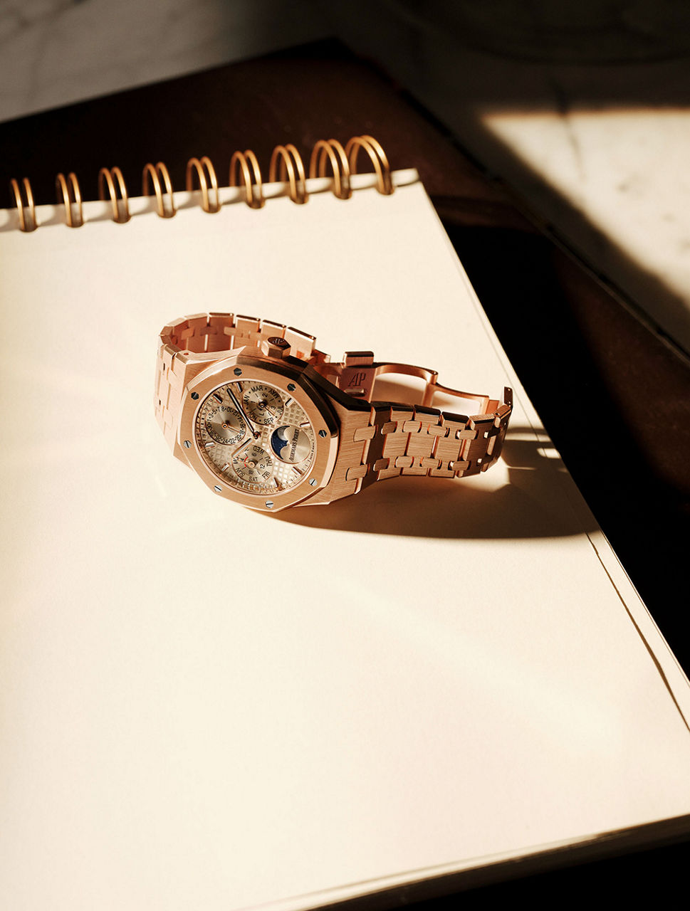 The 18-carat pink gold integrated bracelet is fitted with an AP folding clasp.