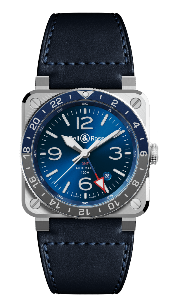 With the BR-03 GMT BLUE, an instrument watch with dual time zone reading, Bell & Ross continues its voyager approach with a colourway that’s rare, elegant and subtle.