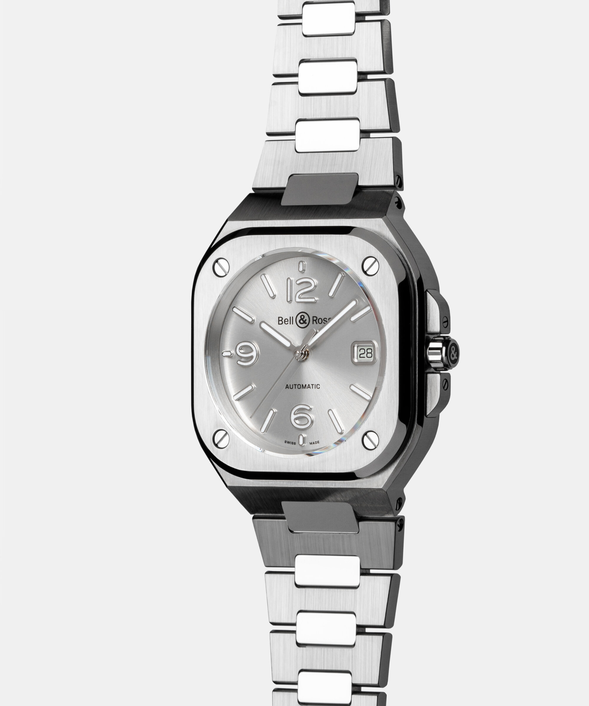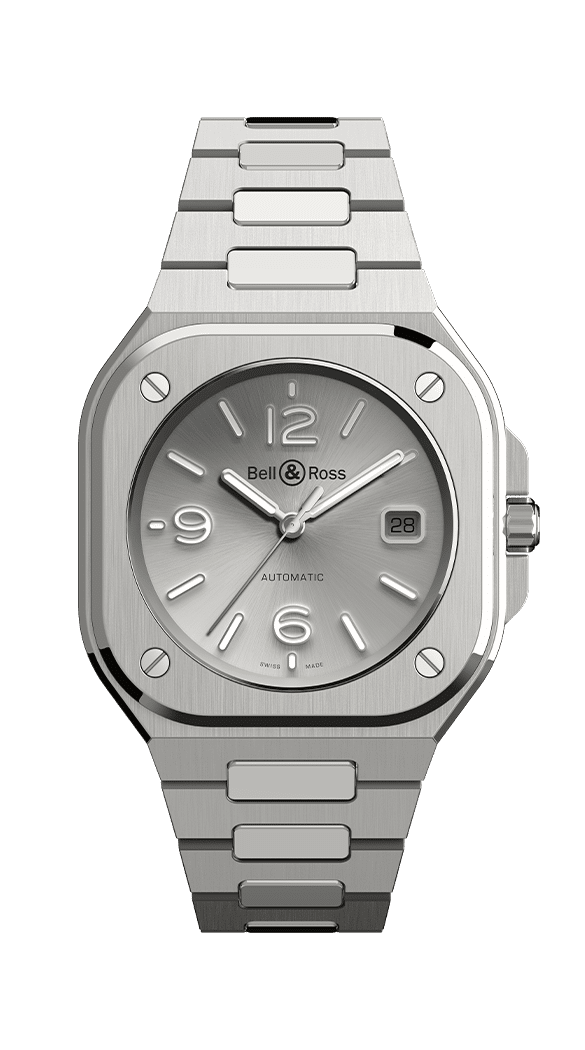The BR-05 belongs to the family of watches with an integrated bracelet: the bracelet fuses with the case to create a unified piece.