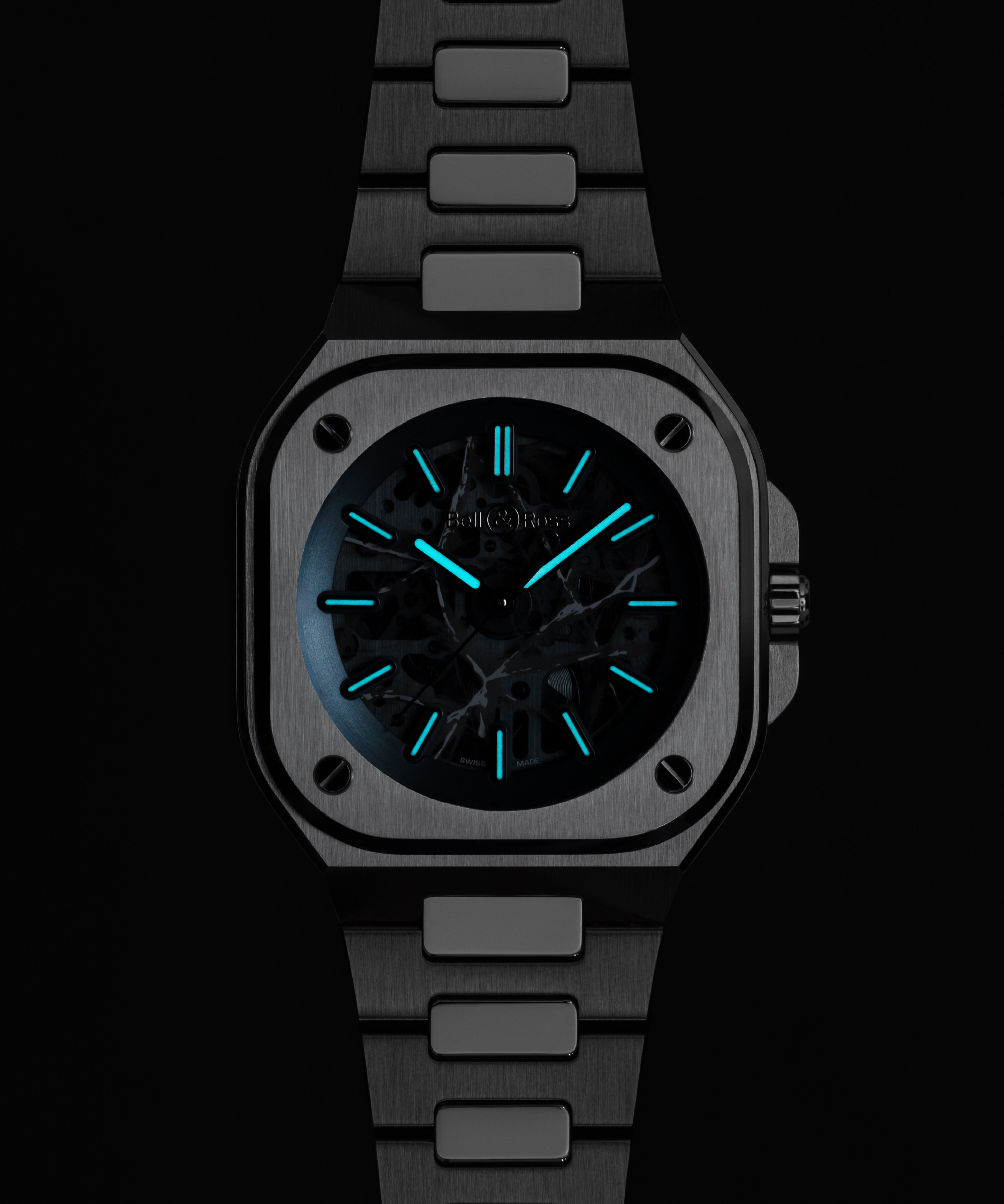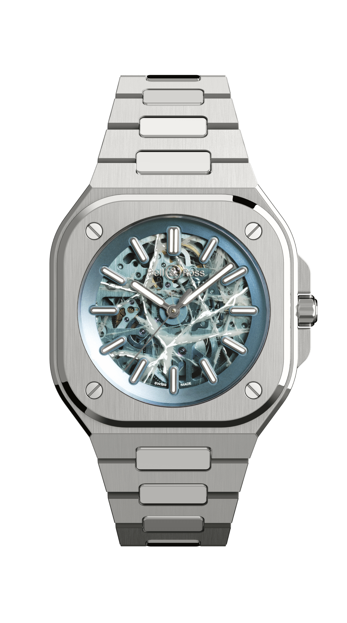 The BR-05 Skeleton collection rises to the challenge of transparency, reflecting true watchmaking expertise. For this new version, the dial of the BR-05 Skeleton Arctic Blue appears to be carved from a block of ice.