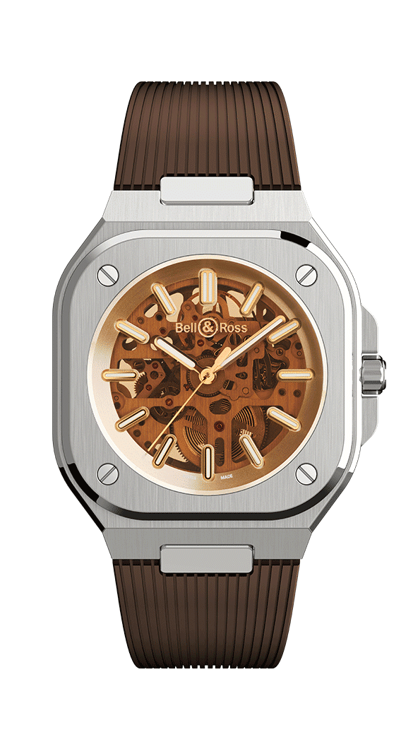 The BR-05 SKELETON Collection adorns the challenge of transparency. Reflecting the finest Haute Horlogerie craftsmanship, the skeleton version of the BR-05 highlights the architectural modern design of Bell & Ross’ latest urban collection.
