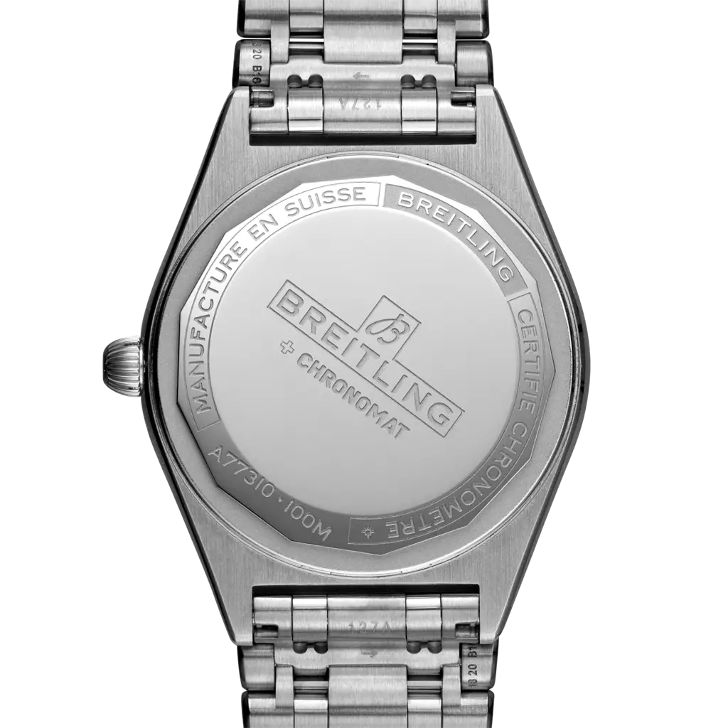 Stylish yet elegant, the modern-retro inspired Chronomat 32 is the versatile sporty and chic watch for any occasion. It is available in an array of metal cases, from cool stainless steel, to goes-with-everything bicolor, or even luxurious 18k red gold. Women craving extra sparkle will also be able to opt for diamond-set bezels, indices, and colorful dials. Featuring Breitling’s iconic and comfortable “Rouleaux” bracelet with a butterfly clasp, the Chronomat 32 is powered by the Breitling Caliber 77, a COSC-certified SuperQuartz™ chronometer.