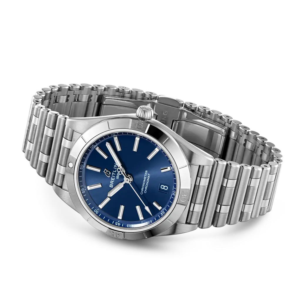 Stylish yet elegant, the modern-retro inspired Chronomat Automatic 36 is the versatile sporty and chic watch for any occasion. It is available in an array of metal cases, from cool stainless steel, to goes-with-everything bicolor, or even luxurious 18k red gold. Women craving extra sparkle will also be able to opt for diamond-set bezels, indices, and colorful dials. Featuring Breitling’s iconic and comfortable “Rouleaux” bracelet with a butterfly clasp, the Chronomat Automatic 36 is powered by the Breitling Caliber 10, a COSC-certified chronometer.
