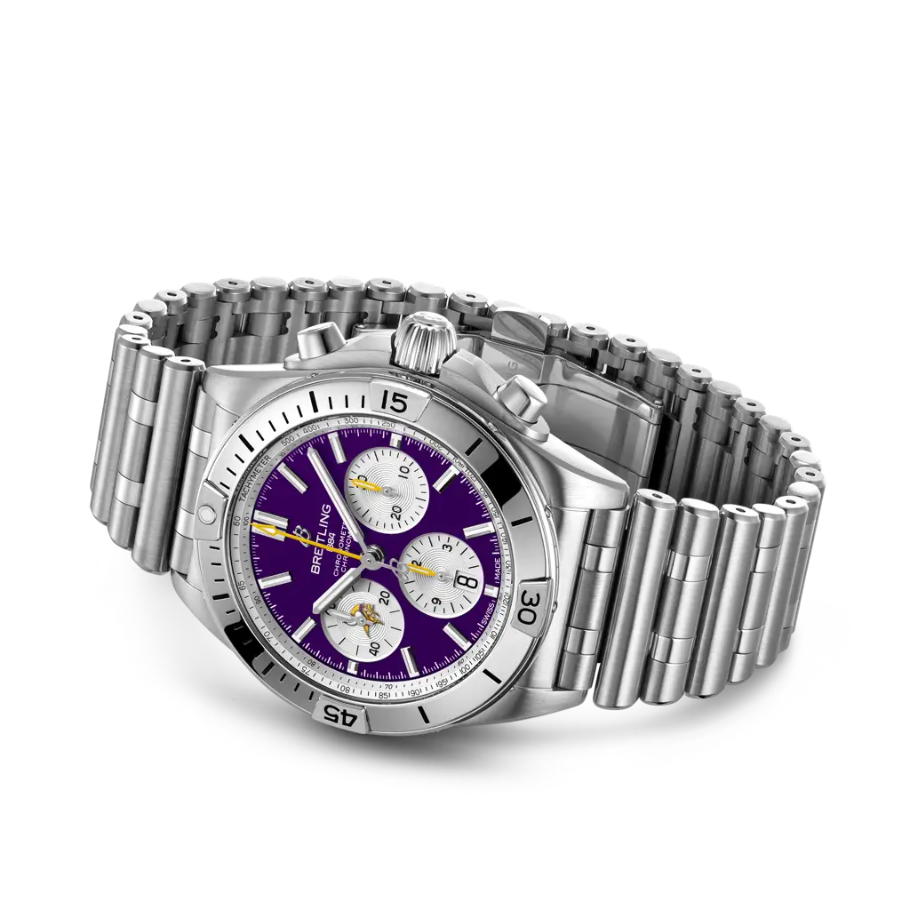 A match-up as exciting as the Super Bowl. Breitling announces a long-term exclusive licensing agreement with the National Football League (NFL), the world’s premier professional football organization consisting of 32 teams. Our Chronomat B01 42 NFL Team Editions special edition watch series captures the essence of this renowned league and is available exclusively in the U.S. No matter which of the legendary franchises you support, there’s a timepiece that represents your team. The 32 watches, limited to 104 pieces each, are powered by Breitling’s exceptional Manufacture Caliber 01. Each caseback is specially designed with the NFL’s shield and engraved with the “One of 104” limitation. The Breitling Chronomat B01 42 Minnesota Vikings watch captures the team colors in its purple dial with white subdials. The iconic Minnesota Vikings logo is emblazoned in the subdial at 9 o’clock. Show your support for the Vikings with this watch, available on either a stainless-steel Rouleaux bracelet or rubber Rouleaux.