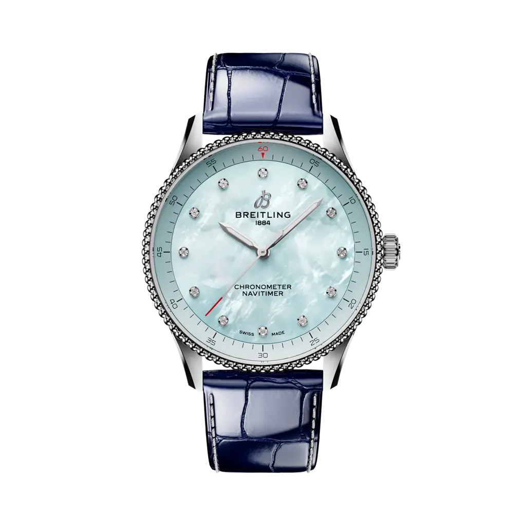 Breitling’s icon—for the journey. The Navitimer is one of the most recognizable watches ever made. It’s on collectors’ lists of the greatest watches of all time. What began in 1952 as a tool for pilots has gone on to mean something profound to every single person who has had this timepiece along on their personal journey. Our icon now comes in 36 and 32 mm sizes for women and men who love the look and feel of a smaller diameter watch. While the 36-mm Navitimer features the beaded bezel and iconic circular slide rule that gives the Navitimer its unmistakable appearance, the dazzling 32 mm variation forgoes the slide rule in favor of a simplified dial design suited to its slim diameter. But these showstoppers have so much more to offer than just their trim new sizes. Pops of pastel, mother of pearl, and traceable precious materials combine with subtle refinements to give the timepieces a jewelry-like appeal—adding a versatile elegance to the legendary navigational watch that’s ready for wherever the journey takes you.