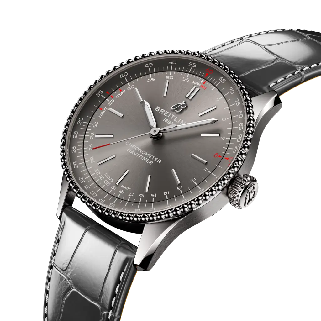 Breitling’s icon—for the journey. The Navitimer is one of the most recognizable watches ever made. It’s on collectors’ lists of the greatest watches of all time. What began in 1952 as a tool for pilots has gone on to mean something profound to every single person who has had this timepiece along on their personal journey. Our icon now comes in 36 and 32 mm sizes for women and men who love the look and feel of a smaller diameter watch. While the 36-mm Navitimer features the beaded bezel and iconic circular slide rule that gives the Navitimer its unmistakable appearance, the dazzling 32 mm variation forgoes the slide rule in favor of a simplified dial design suited to its slim diameter. But these showstoppers have so much more to offer than just their trim new sizes. Pops of pastel, mother of pearl, and traceable precious materials combine with subtle refinements to give the timepieces a jewelry-like appeal—adding a versatile elegance to the legendary navigational watch that’s ready for wherever the journey takes you.