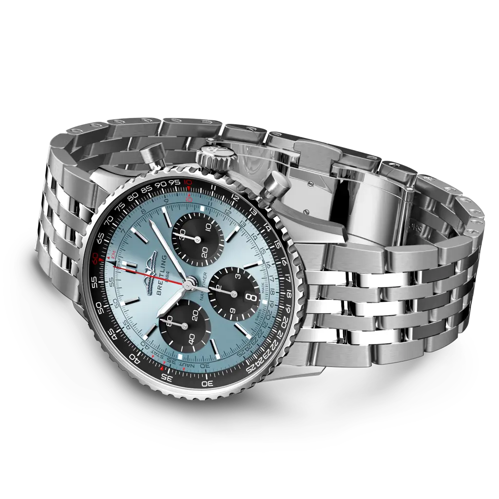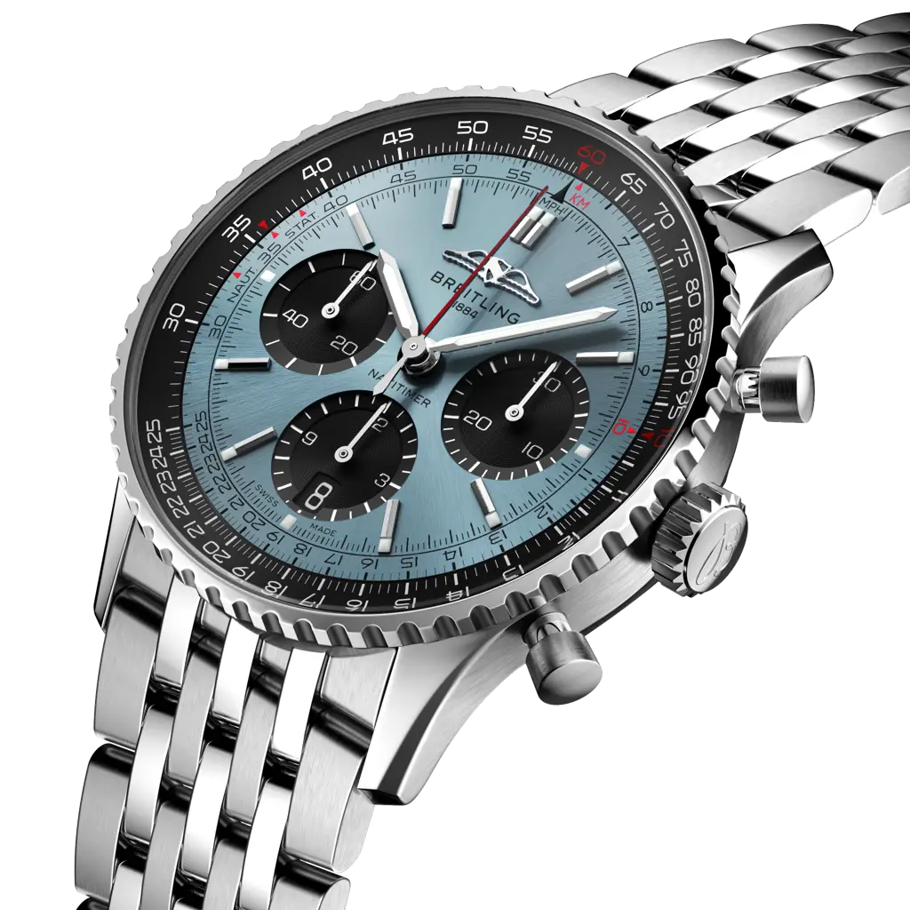 Breitling’s iconic pilot’s chronograph – for the journey. In 1952, Willy Breitling developed a wrist-worn chronograph with a circular slide rule that would allow pilots to perform all necessary flight calculations. Two years later, the Aircraft Owners and Pilots Association (AOPA) announced the design as its official timepiece. The “navigation timer” – or Navitimer – was born. The AOPA was (and remains) the largest pilots’ club in the world, counting nearly every US aviator among its ranks. As the defacto pilot’s watch throughout the glory days of civil aviation, the Navitimer was worn by airline captains and aircraft enthusiasts. It even made its way into space on the wrist of astronaut Scott Carpenter in 1962. And it wasn’t only pilots drawn to the watch’s irrepressible aesthetic. Celebrities of the day such as Miles Davis and Serge Gainsbourg were devotees, proving that the Navitimer had style as well as function. There have been many iterations of Breitling’s icon since its debut 70 years ago, but this new Navitimer captures its most classic features, while enhancing them with modern refinements. A flattened slide rule and a domed crystal create the illusion of a sleeker profile. Alternating polished and brushed metal elements give a lustrous, yet understated finish. Most notably, new colors in shades of blue, green and copper, define the updated dial options. And if there is one update sure to spark nostalgia, it’s the return of the AOPA wings to their original position at 12 o’clock. For 70 years, Breitling’s original pilot’s watch has been beloved by aviators and tastemakers in equal measure. Worn by astronauts in space and the biggest stars on earth, it is Breitling’s most iconic timepiece and one of the most recognizable watches of all time.