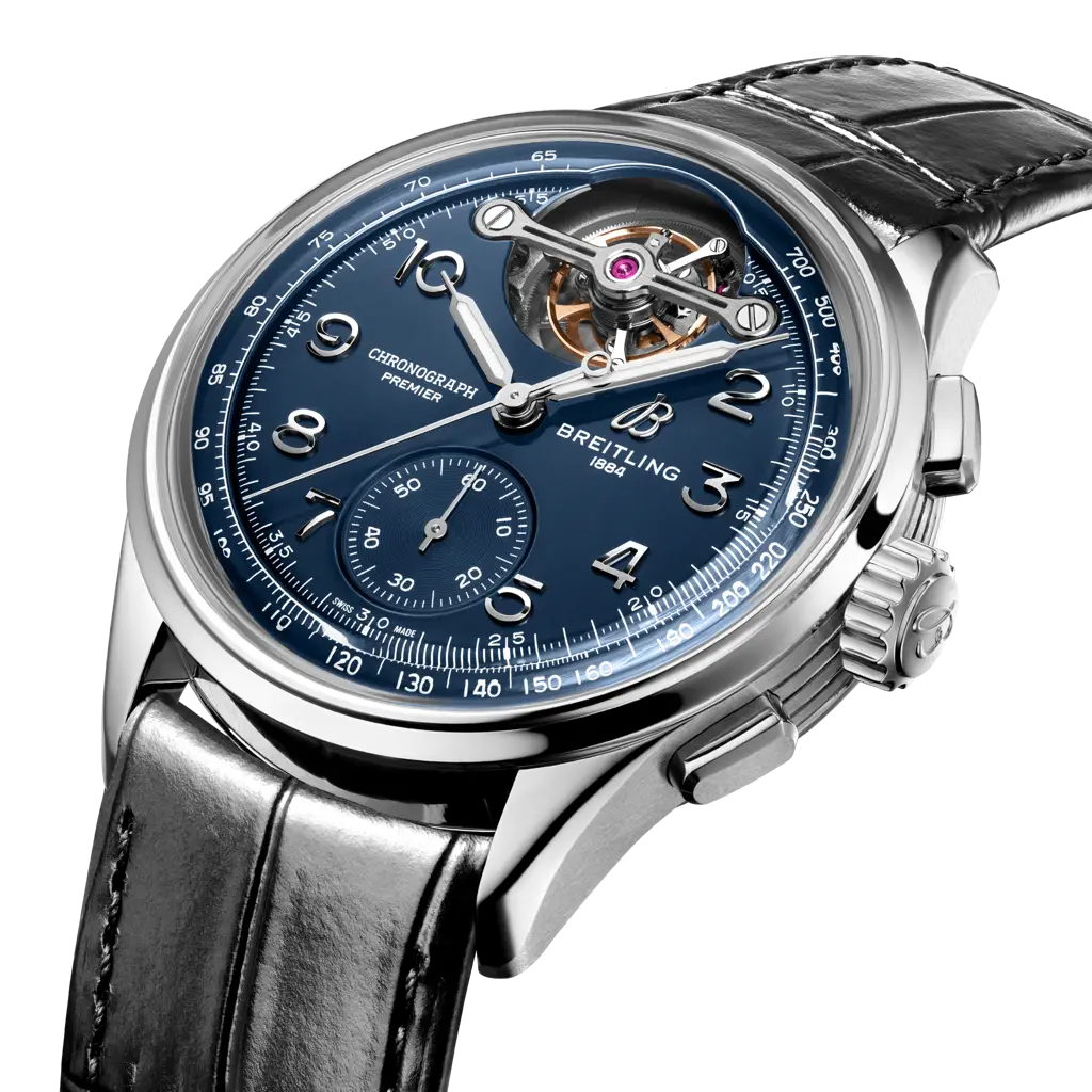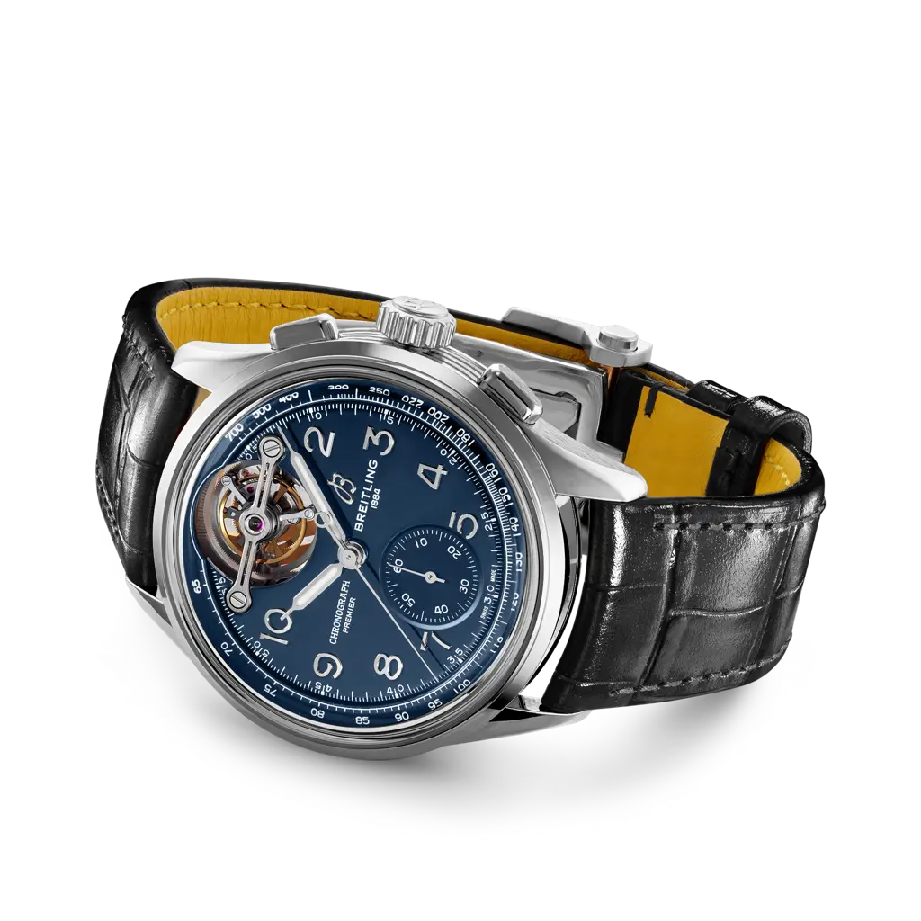 The Premier Tourbillon is a series for people who love the mechanics—and magic—of watchmaking. Named for each of the Breitling founders, Leon, Gaston and Willy, the three watches feature the stylized square pushers and Arabic numerals that are hallmarks of the Premier line. Their symmetrical dial design, harmonious interplay of numerals and tone-on-tone colorways perfectly balance the undisputed star of the show—the tourbillon—which takes center stage at 12 o’clock. The open sapphire crystal caseback is domed to allow for full appreciation of the B21 movement, whose oscillating weight and tourbillon appear in contrasting 18k gold. Breitling worked hand-in-hand with the boutique movement maker La Joux-Perret to develop the exquisite B21 movement that takes the uncommon step of combining a tourbillon with a chronograph to make this trio of watches so distinctively Breitling.