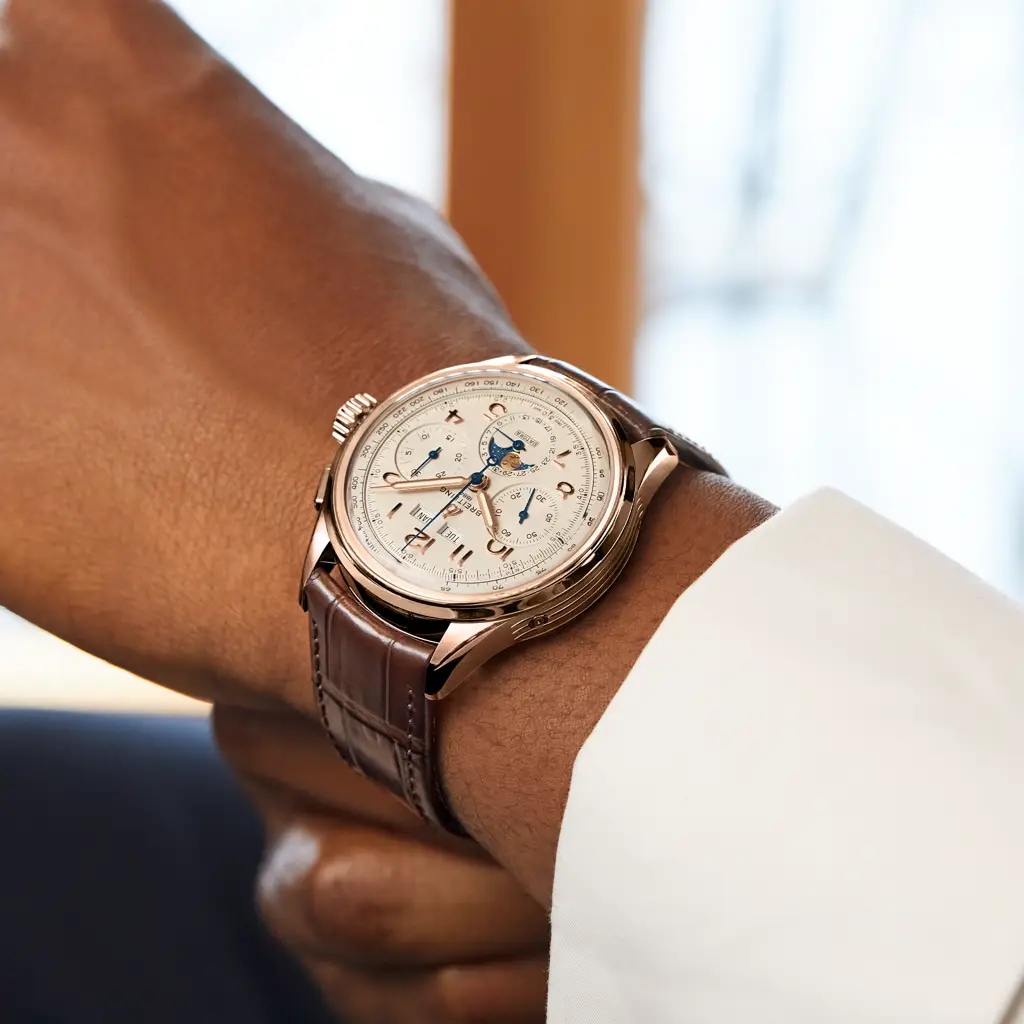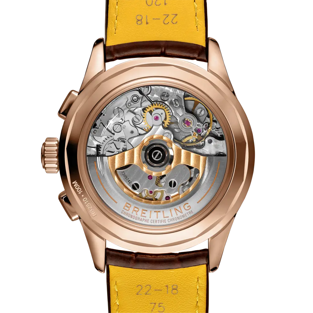 Paying homage to three generations of inventors – Léon, Gaston & Willy Breitling – the Premier Datora is the most refined Breitling chronograph with its complete calendar and moon-phase. As Willy Breitling said, the Premier is an “unmistakable stamp of impeccable taste”. This latest generation of Premier chronographs brings its timeless elegance back to life, and showcases Breitling’s highest level of watchmaking thanks to a range of iconic Premier complications: the Chronograph, the Duograph and the Datora. Featuring rectangular chronograph pushers and Arabic numerals, the heritage-revived Premier Datora displays a variety of elegant design details such as grooves on the case-sides, open sapphire casebacks and vintage-inspired hands. The Datora comes in two variations: in stainless steel with a copper dial and a brown alligator strap or in 18k red gold with a silver dial and a brown alligator strap. “Datora” was a term used by Breitling in the 1940s and refers to a complete calendar chronograph displaying day, date, month and the different moon phases. The Datora is powered by the cosc-certified Manufacture Caliber B25.