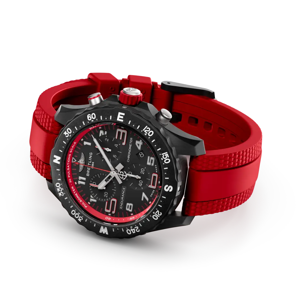 Designed to be both a lightweight timepiece for athletes and a casual, everyday sports chronograph, the Endurance Pro perfectly blends innovative technology with a vibrant design to produce the ultimate athleisure watch. Designed for men and women whose active lives combine a professional mindset with a sporty lifestyle, the Endurance Pro is up to the challenges of a rigorous workout, but fashionable enough for everyday wear. The Endurance Pro features an ultra-light Breitlight® case, a robust material 3.3 times lighter than titanium and 5.8 times lighter than stainless steel. Non-magnetic, thermally stable and hypoallergenic, Breitlight® is highly resistant to scratches, traction and corrosion. It also has a feel that is warmer than metal and a slightly textured effect, accentuating the originality of the design. Exclusive to Breitling, the material is 100-percent Swiss-made. In 44 mm or 38 mm, the Endurance Pro is available to athletes with a multitude of colorful dials and rubber straps all fitting a Breitlight® tang-type buckle. The two sizes are respectively powered by Breitling’s Caliber 82 and 83, both COSC-certified SuperQuartz™ chronographs delivering exceptional precision.