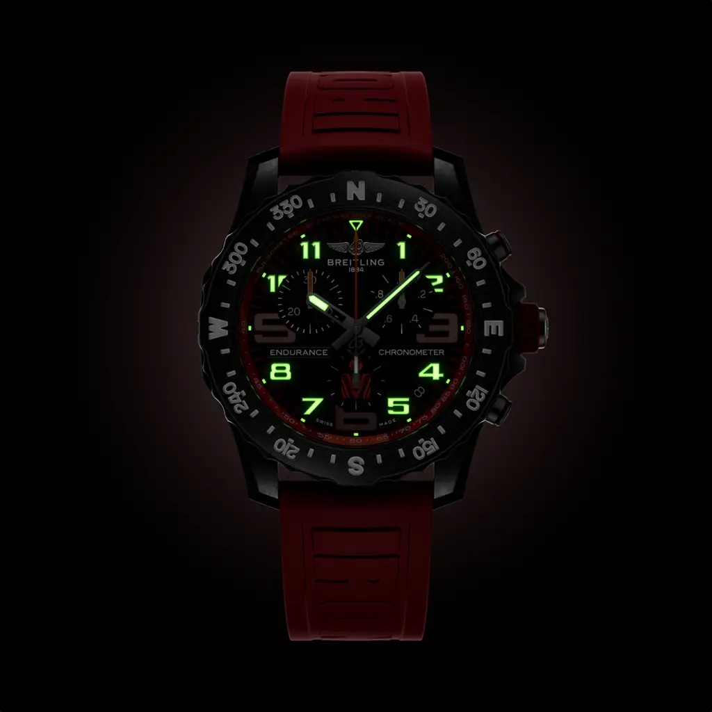 Breitling’s IRONMAN® 70.3 World Championship edition ultra-lightweight Endurance Pro watch. On your toughest stretches and your steepest climbs, what drives you to push to the finish? You have the mental ammunition to keep you going. Let your Endurance Pro IRONMAN® edition be another tool in your arsenal. The Endurance Pro was designed for elite triathletes, but works just as well as a stylish sports chronograph for everyday wear. It’s made of Breitlight®, a robust material 3.3 times lighter than titanium and 5.8 times lighter than stainless steel. It’s also thermally stable (with a touch that’s warmer than metal), while being scratch-resistant, non-magnetic and hypo-allergenic. With its rubber strap and 100 m water resistance, the Endurance Pro IRONMAN performs just as well in water as it does on land. And each one is powered by Breitling’s Caliber 82, a COSC-certified SuperQuartz™ movement that provides exceptional accuracy. Combine that with its easy readability, chronograph function and solar compass, and you have a powerful motivator for crossing the finish line. Limited to just 300 pieces, this unique collectable edition features the distinctive IRONMAN® 70.3 World Championship design and color scheme. Make this performance watch a reward for your achievement or let it be your incentive to conquer the challenge ahead. Either way, it’s a keepsake that will serve as a constant reminder of all that you put in to become an IRONMAN.