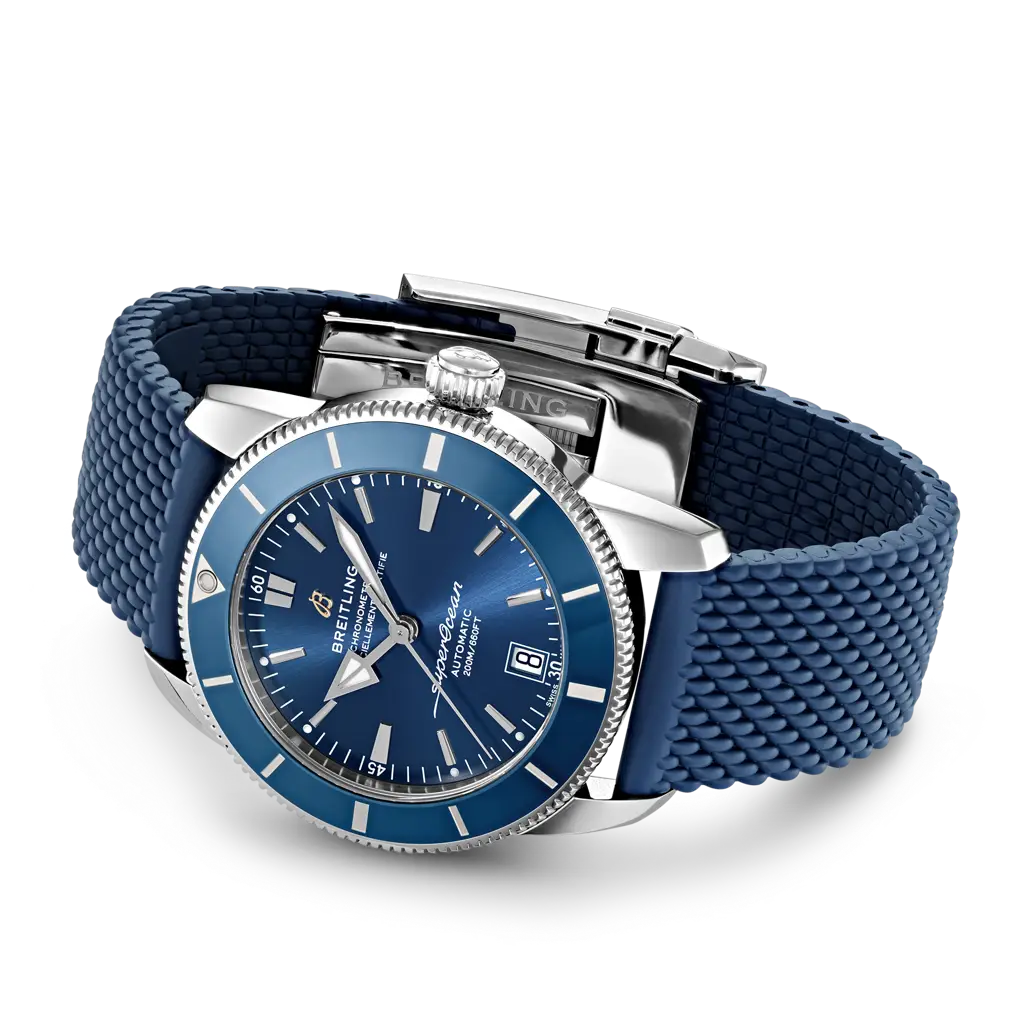 Inspired by the original Superocean from the 1950s, the Superocean Heritage combines iconic design features with a modern touch. Sporty and elegant, the Superocean Heritage is a true embodiment of style at sea. Featuring the iconic triangular-shaped hands as well as a unidirectional bezel with a polished ceramic ring, the Superocean Heritage is an elegant looking diver’s watch. Available in a variety of sizes and materials including stainless steel and 18k red gold, the Superocean Heritage B20 Automatic features a range of black, blue or green dials. Offered either with a matching mesh bracelet, or a “mesh-styled” rubber strap fitting a folding buckle, this Superocean Heritage is powered by the Breitling Manufacture Caliber B20, a COSC-certified chronometer based on the Tudor Caliber MT5612.