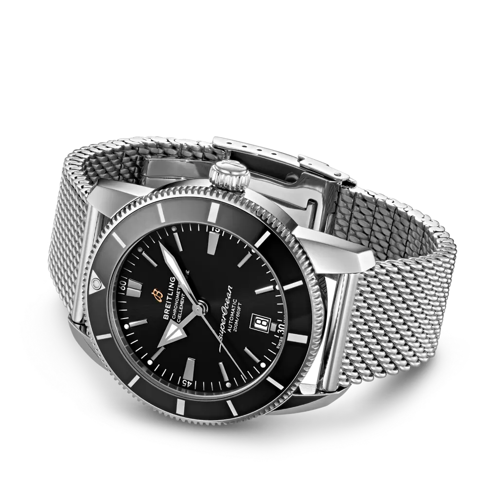 Inspired by the original Superocean from the 1950s, the Superocean Heritage combines iconic design features with a modern touch. Sporty and elegant, the Superocean Heritage is a true embodiment of style at sea. Featuring the iconic triangular-shaped hands as well as a unidirectional bezel with a polished ceramic ring, the Superocean Heritage is an elegant diver’s watch. Available in a variety of sizes and materials including stainless steel and 18k red gold, the Superocean Heritage B20 Automatic features a range of colored dials. Offered either with a matching mesh bracelet, or a “mesh-styled” rubber strap fitted with a folding buckle, this Superocean Heritage is powered by the Breitling Manufacture Caliber B20, a COSC-certified chronometer based on the Tudor Caliber MT5612.