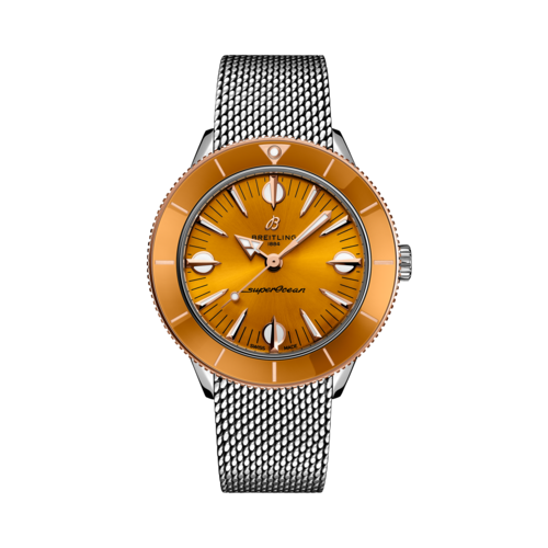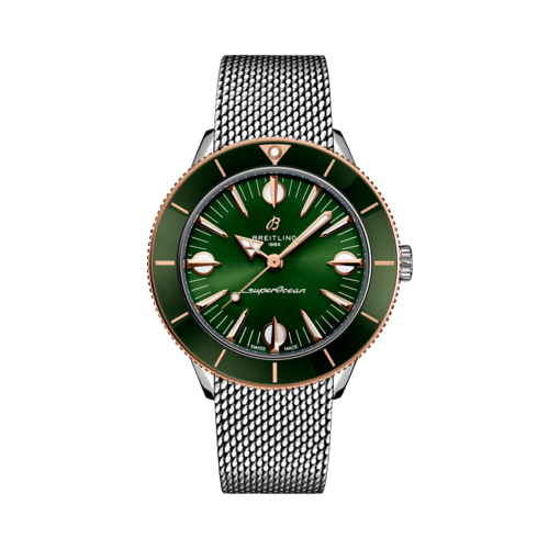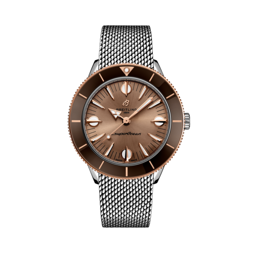 In the 1950s, the demand for divers’ watches increased due to their essential role in ocean exploration and aquatic sports. Following this trend, Breitling launched two pioneering diving watches in 1957: a time–only model (Ref. 1004) and a chronograph (Ref. 807), both named SuperOcean. Inspired by the sleek Ref. 1004, Breitling's Superocean Heritage combines timeless vintage design cues with modern craftsmanship. While water–resistant, it is also refined enough for a stylish day by the seaside.
