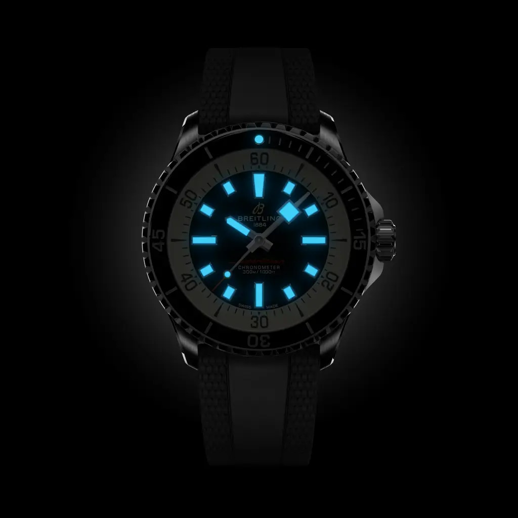 Performance and style for all your water-based pursuits. In the 1960s, the new sport of scuba diving was all the rage. For divers, timing was everything, and Breitling set out to give them the most clear-cut dive watch possible by eliminating any feature that didn’t support their lifesaving needs underwater. This pared-down watch was named the Slow Motion. What remained were clean lines, chunky luminescent indexes, squared-off hands and a high-contrast dial ring, all aimed at maximum legibility. Practical, yes. But what people really fell in love with was the look. The new Superocean retraces the Slow Motion's celebrated design codes, while adding modern features, like a ceramic-inlayed bezel and brightly colored dials. Broad hands and indexes in luminescent Super-LumiNova® allow for easy readability underwater. The watch is water resistant to 300 m (1000 ft), as well as being shock-, sand- and saltwater-resistant. The bronze version uses a special alloy that has excellent resistance to corrosion, yet will still develop a subtle patina over time that makes the watch even more unique. The two strap options (rubber and metal bracelet) have a folding clasp that allows for micro-adjustments of up to 15 mm for easy wear over rashies and wetsuits. Its scratch-proof ceramic inlayed bezel will never wear or fade. For safety, the bezel is uni-directional on most sizes and bi-directional with a patented lock on the 46 mm. Best of all, this is no longer strictly a dive watch—surf with it, swim with it, hit the beach bar with it, then wear it out to dinner. The Superocean perfectly balances the nostalgia of its heritage with a fresh new look.
