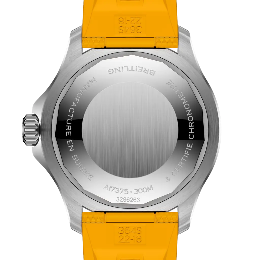 Performance and style for all your water-based pursuits. In the 1960s, the new sport of scuba diving was all the rage. For divers, timing was everything, and Breitling set out to give them the most clear-cut dive watch possible by eliminating any feature that didn’t support their lifesaving needs underwater. This pared-down watch was named the Superocean Slow Motion. What remained were clean lines, chunky luminescent indexes, squared-off hands and a high-contrast dial ring, all aimed at maximum legibility. Practical, yes. But what people really fell in love with was the look. The new Superocean retraces the Slow Motion's celebrated design codes, while adding modern features, like a scratch-proof ceramic-inlayed bezel and brightly colored dials. Broad hands and indexes in a rainbow gradient of luminescent Super-LumiNova® allow for easy readability (and extra fun). The watch is water resistant to 300 m (1,000 ft), as well as being shock-, sand- and saltwater-resistant. The bronze version uses a special alloy that has excellent resistance to corrosion, yet will still develop a subtle patina over time that makes the watch even more unique. The rubber strap comes with a folding clasp that allows for micro-adjustments of up to 15 mm for easy wear over rashies and wetsuits. For safety, the bezel is uni-directional. Best of all, this is no longer strictly a dive watch—surf with it, swim with it, hit the beach bar with it, then wear it out to dinner. The Superocean perfectly balances the nostalgia of its heritage with a fresh new look.