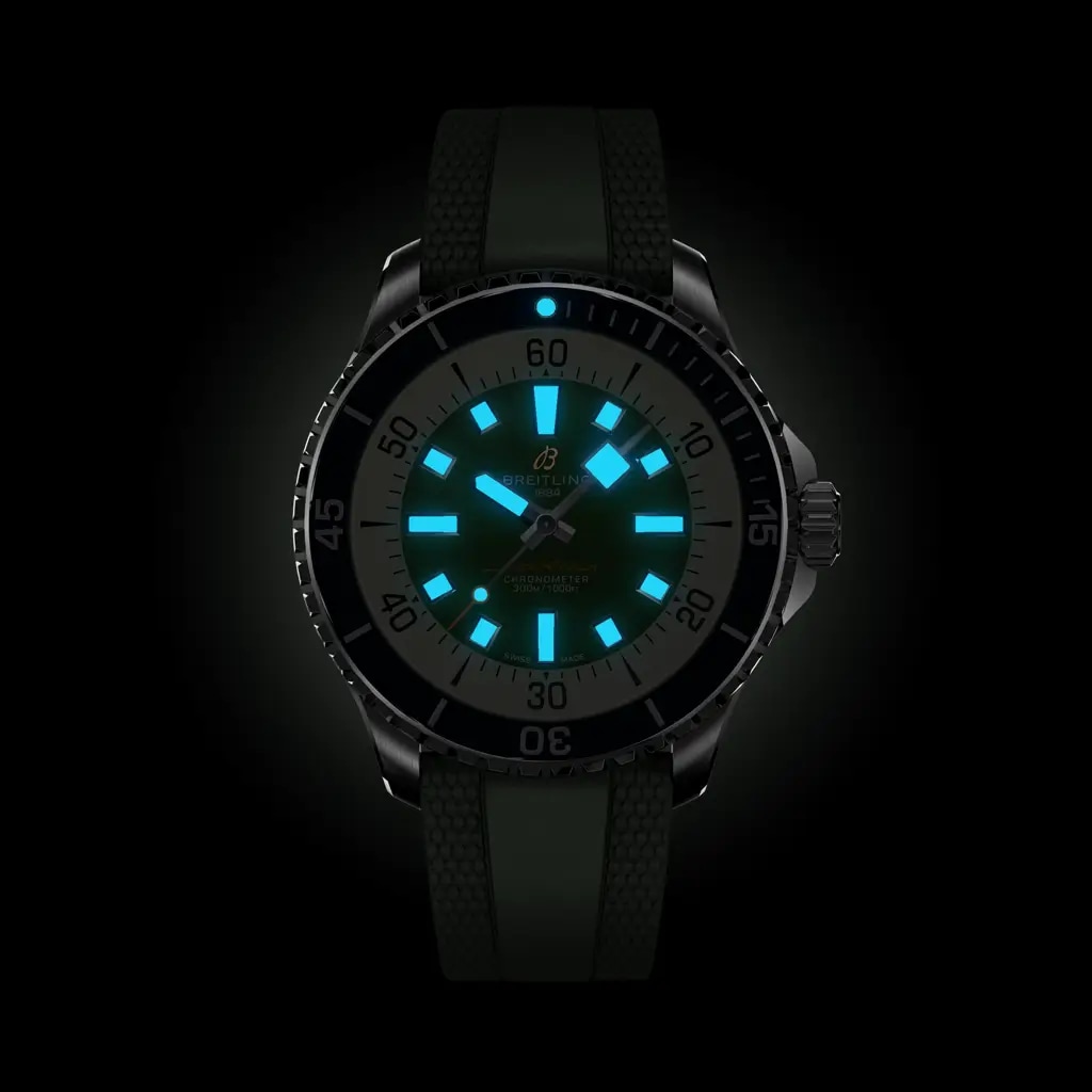 Performance and style for all your water-based pursuits. In the 1960s, the new sport of scuba diving was all the rage. For divers, timing was everything, and Breitling set out to give them the most clear-cut dive watch possible by eliminating any feature that didn’t support their lifesaving needs underwater. This pared-down watch was named the Slow Motion. What remained were clean lines, chunky luminescent indexes, squared-off hands and a high-contrast dial ring, all aimed at maximum legibility. Practical, yes. But what people really fell in love with was the look. The new Superocean retraces the Slow Motion's celebrated design codes, while adding modern features, like a ceramic-inlayed bezel and brightly colored dials. Broad hands and indexes in luminescent Super-LumiNova® allow for easy readability underwater. The watch is water resistant to 300 m (1000 ft), as well as being shock-, sand- and saltwater-resistant. The bronze version uses a special alloy that has excellent resistance to corrosion, yet will still develop a subtle patina over time that makes the watch even more unique. The two strap options (rubber and metal bracelet) have a folding clasp that allows for micro-adjustments of up to 15 mm for easy wear over rashies and wetsuits. Its scratch-proof ceramic inlayed bezel will never wear or fade. For safety, the bezel is uni-directional on most sizes and bi-directional with a patented lock on the 46 mm. Best of all, this is no longer strictly a dive watch—surf with it, swim with it, hit the beach bar with it, then wear it out to dinner. The Superocean perfectly balances the nostalgia of its heritage with a fresh new look.