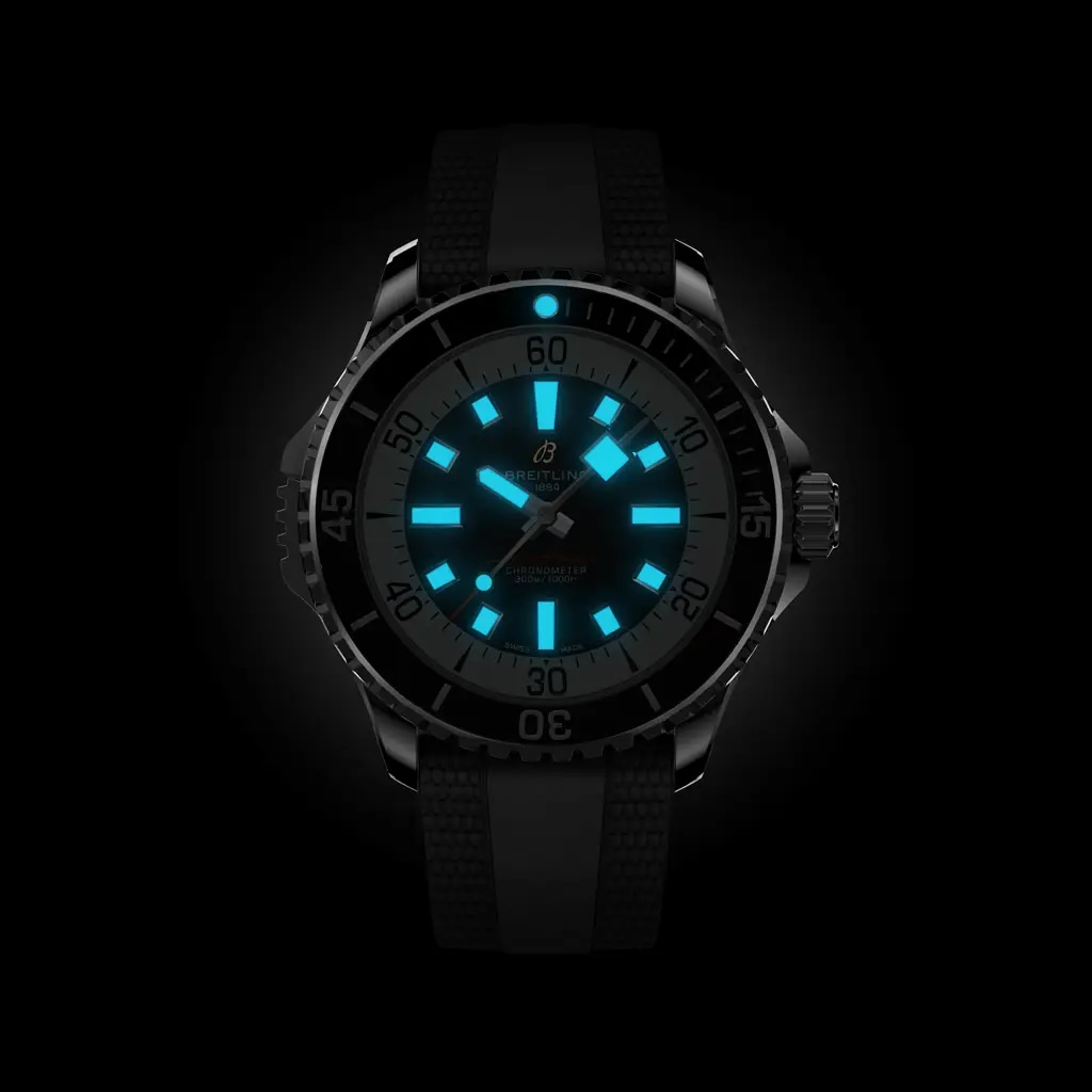 Performance and style for all your water-based pursuits. In the 1960s, the new sport of scuba diving was all the rage. For divers, timing was everything, and Breitling set out to give them the most clear-cut dive watch possible by eliminating any feature that didn’t support their lifesaving needs underwater. This pared-down watch was named the Slow Motion. What remained were clean lines, chunky luminescent indexes, squared-off hands and a high-contrast dial ring, all aimed at maximum legibility. Practical, yes. But what people really fell in love with was the look. The new Superocean retraces the Slow Motion's celebrated design codes, while adding modern features, like a ceramic-inlayed bezel and brightly colored dials. Broad hands and indexes in luminescent Super-LumiNova® allow for easy readability underwater. The watch is water resistant to 300 m (1000 ft), as well as being shock-, sand- and saltwater-resistant. The bronze version uses a special alloy that has excellent resistance to corrosion, yet will still develop a subtle patina over time that makes the watch even more unique. The two strap options (rubber and metal bracelet) have a folding clasp that allows for micro-adjustments of up to 15 mm for easy wear over rashies and wetsuits. Its scratch-proof ceramic inlayed bezel will never wear or fade. For safety, the bezel is uni-directional on most sizes and bi-directional with a patented lock on the 46 mm. Best of all, this is no longer strictly a dive watch—surf with it, swim with it, hit the beach bar with it, then wear it out to dinner. The Superocean perfectly balances the nostalgia of its heritage with a fresh new look.