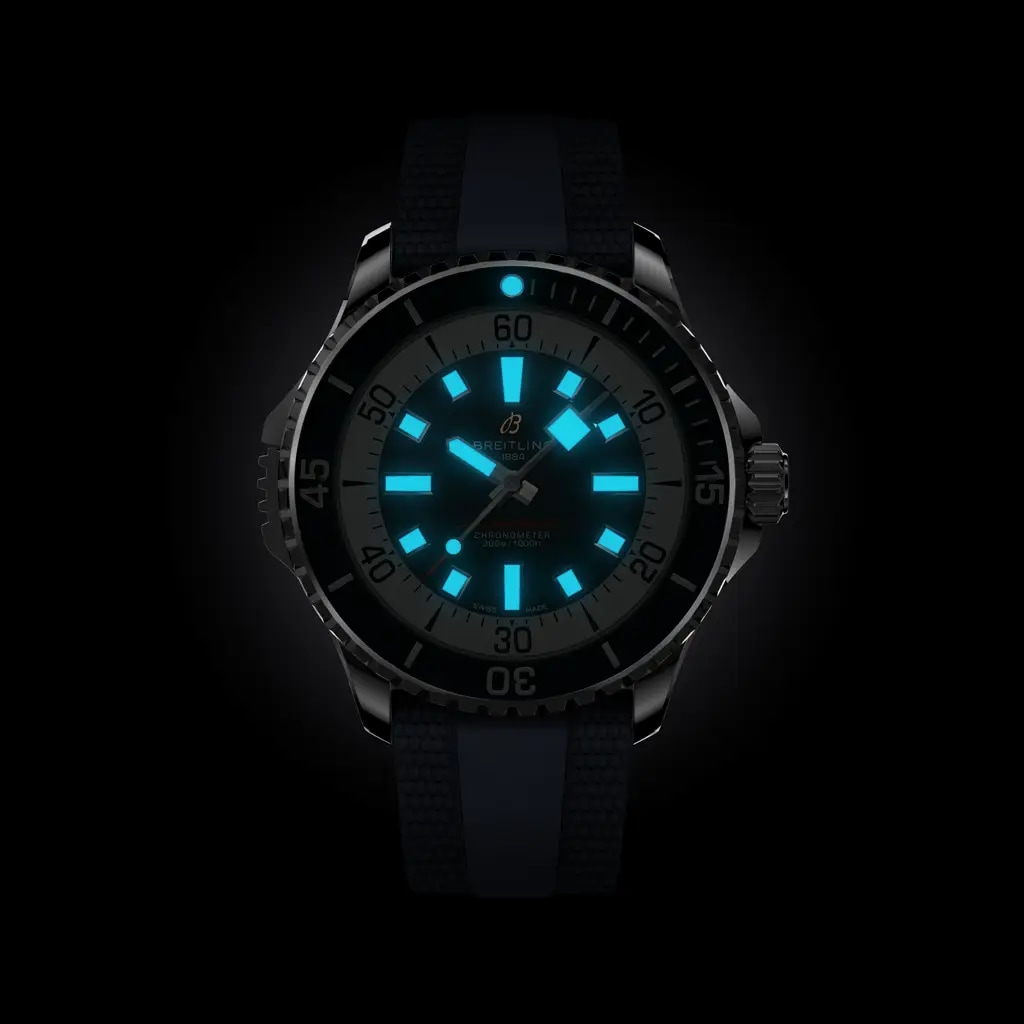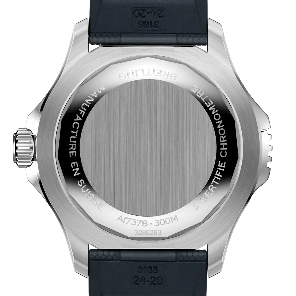 Performance and style for all your water-based pursuits. In the 1960s, the new sport of scuba diving was all the rage. For divers, timing was everything, and Breitling set out to give them the most clear-cut dive watch possible by eliminating any feature that didn’t support their lifesaving needs underwater. This pared-down watch was named the Slow Motion. What remained were clean lines, chunky luminescent indexes, squared-off hands and a high-contrast dial ring, all aimed at maximum legibility. Practical, yes. But what people really fell in love with was the look. The new Superocean retraces the Slow Motion's celebrated design codes, while adding modern features, like a ceramic-inlayed bezel and brightly colored dials. Broad hands and indexes in luminescent Super-LumiNova® allow for easy readability underwater. The watch is water resistant to 300 m (1000 ft), as well as being shock-, sand- and saltwater-resistant. The bronze version uses a special alloy that has excellent resistance to corrosion, yet will still develop a subtle patina over time that makes the watch even more unique. The two strap options (rubber and metal bracelet) have a folding clasp that allows for micro-adjustments of up to 15 mm for easy wear over rashies and wetsuits. Its scratch-proof ceramic inlayed bezel will never wear or fade. For safety, the bezel is uni-directional on most sizes and bi-directional with a patented lock on the 46 mm. Best of all, this is no longer strictly a dive watch—surf with it, swim with it, hit the beach bar with it, then wear it out to dinner. The Superocean perfectly balances the nostalgia of its heritage with a fresh new look.