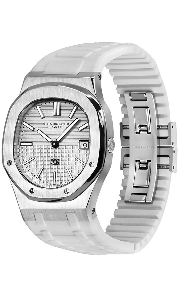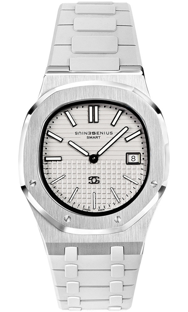 Pure white with sharp detailing. A tribute to Swiss precision and timeless simplicity.