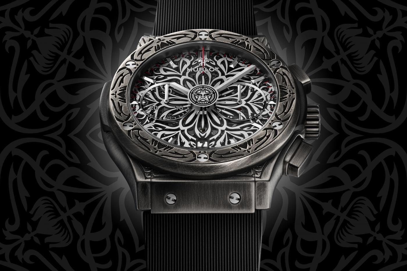 - Bezel : Engraved and Black Brushed Titanium, Engraved Decor Designed by “Shepard Fairey”