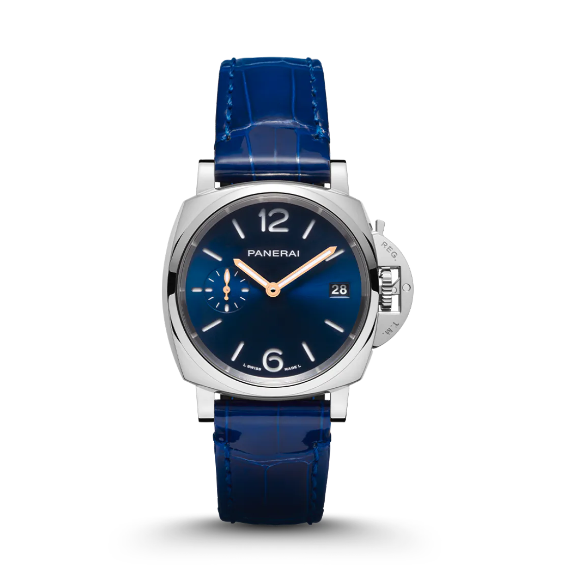 - Date at 3 o'clock and small seconds at 9 o'clock.