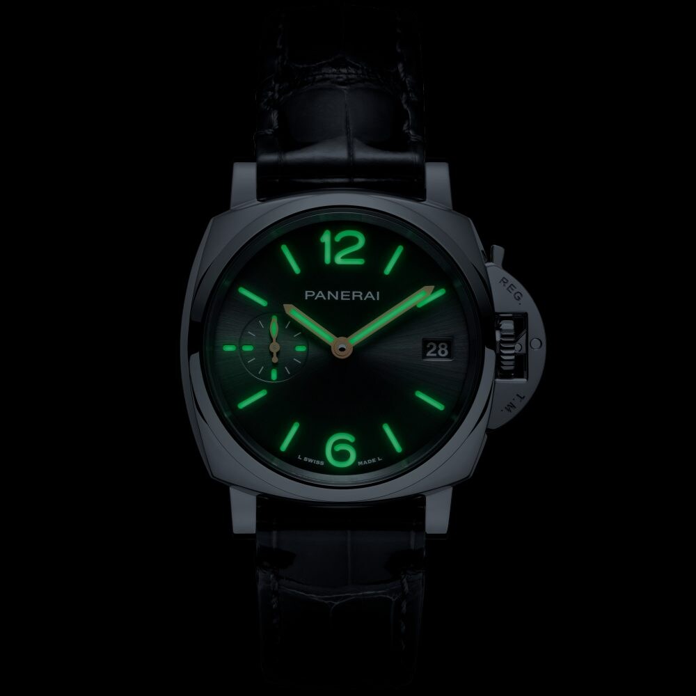 - Anthracite sun-brushed with luminous Arabic numerals and hour markers