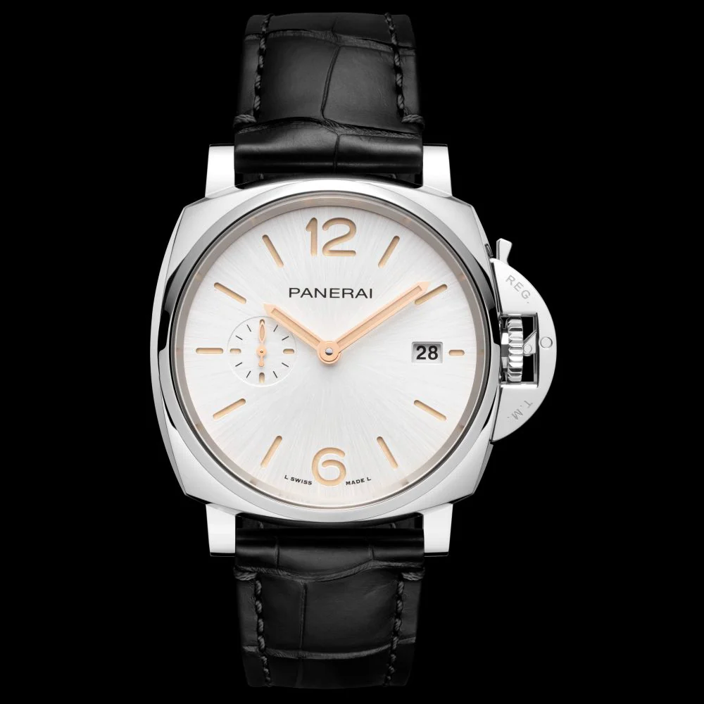 - Date at 3 o'clock and small seconds at 9 o'clock
