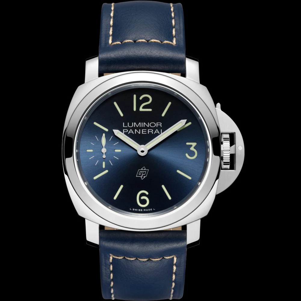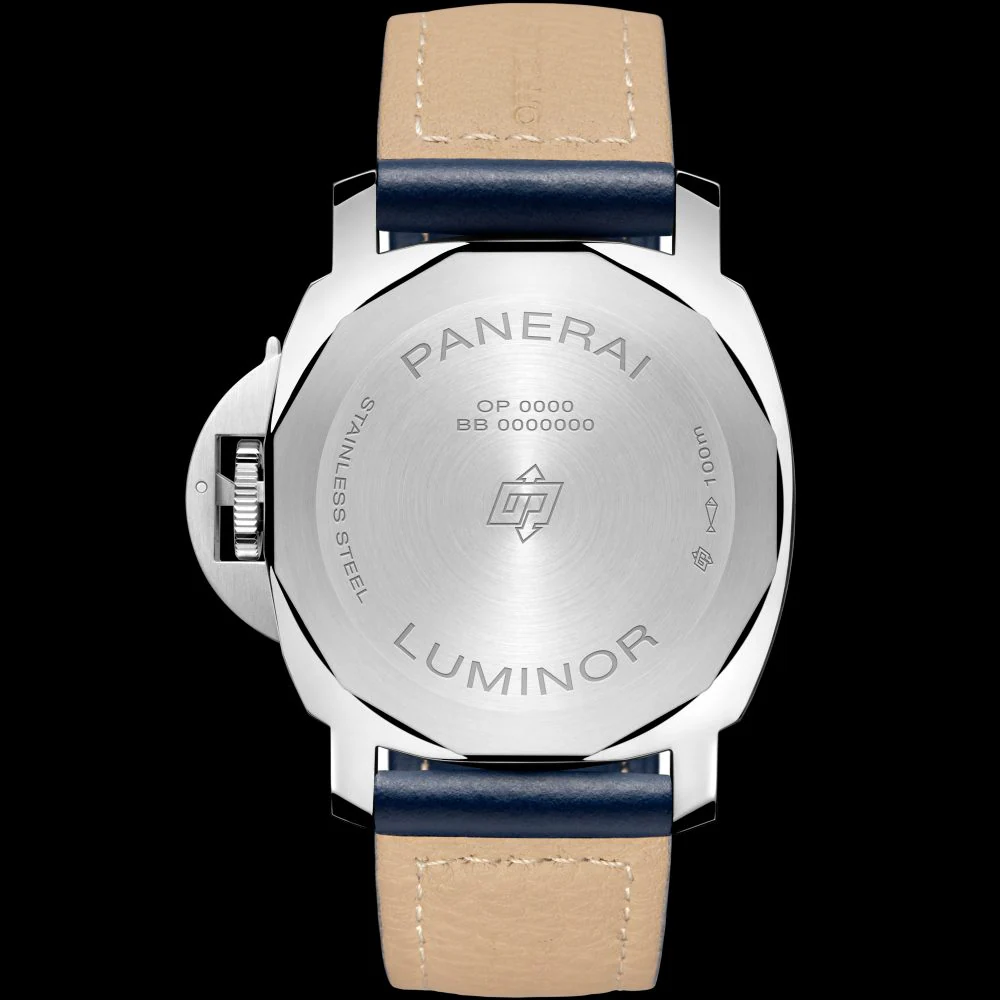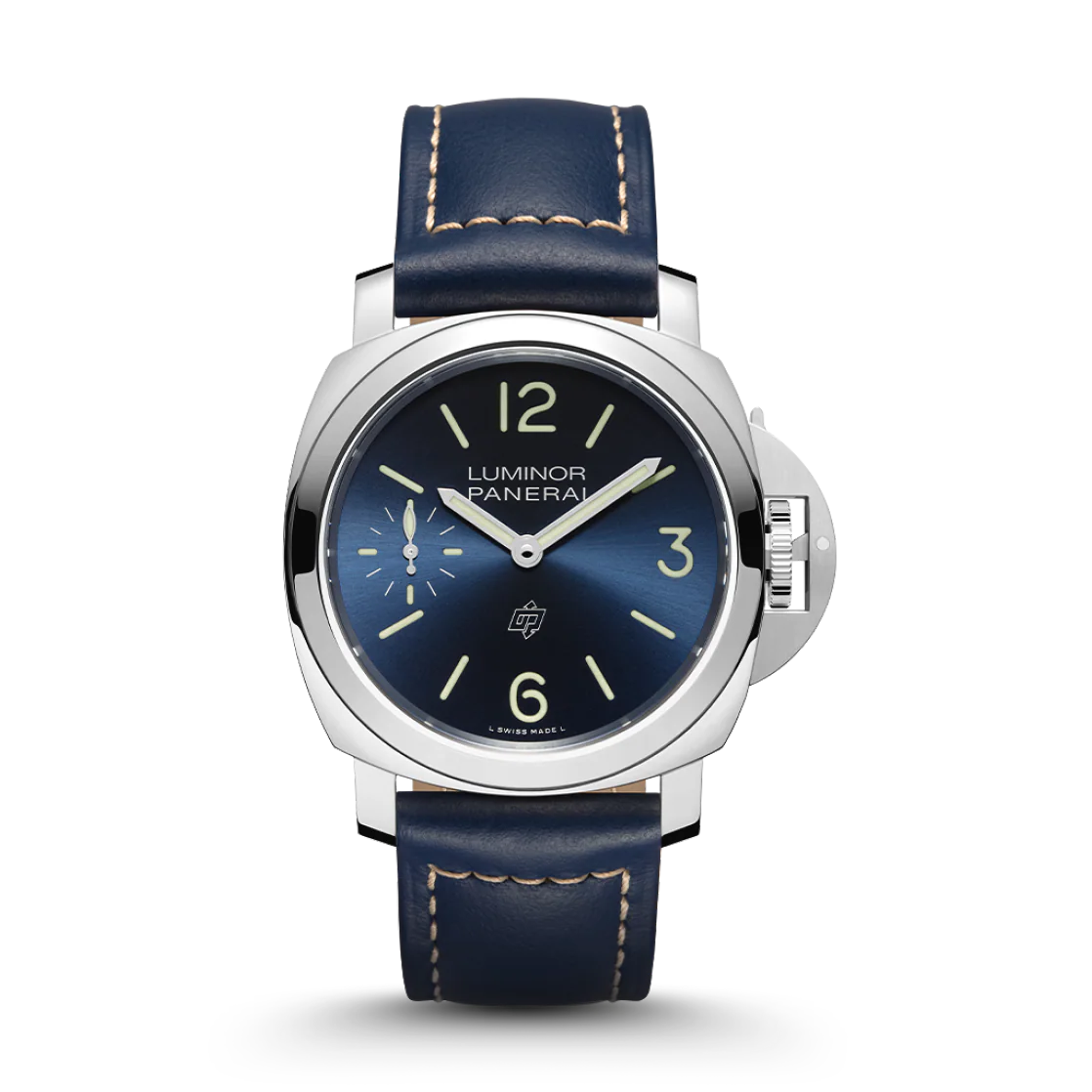 - Blue sun-brushed with luminous Arabic numerals and hour markers