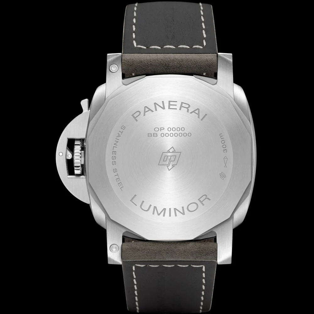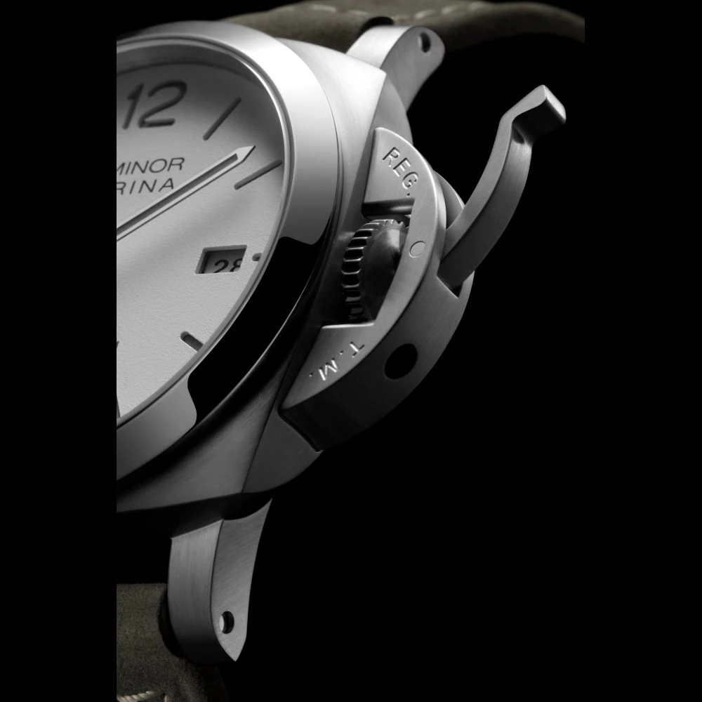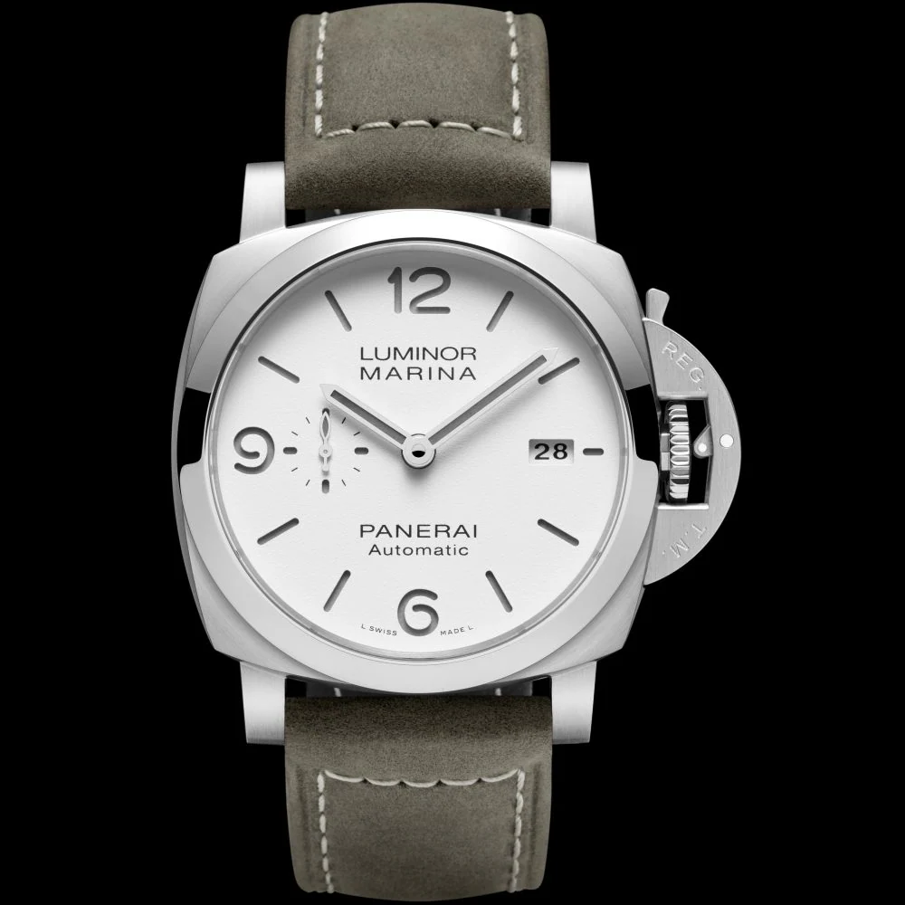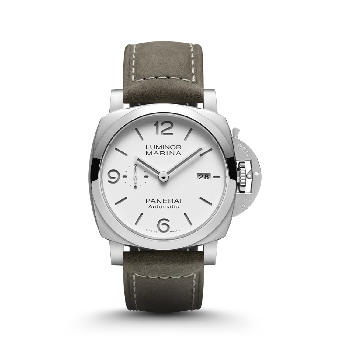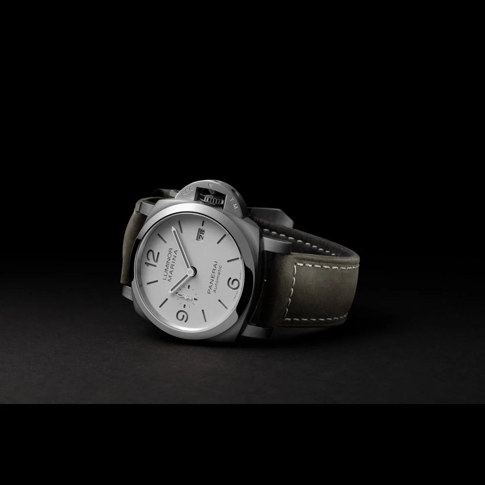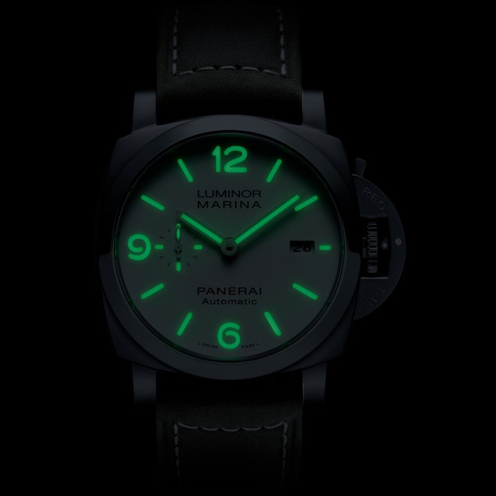 - White with luminous Arabic numerals and hour markers Date at 3 o'clock and small seconds at 9 o'clock