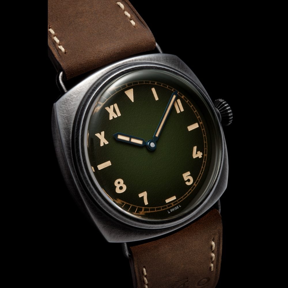 - Dégradé green with luminous Arabic and Roman numerals and hour markers