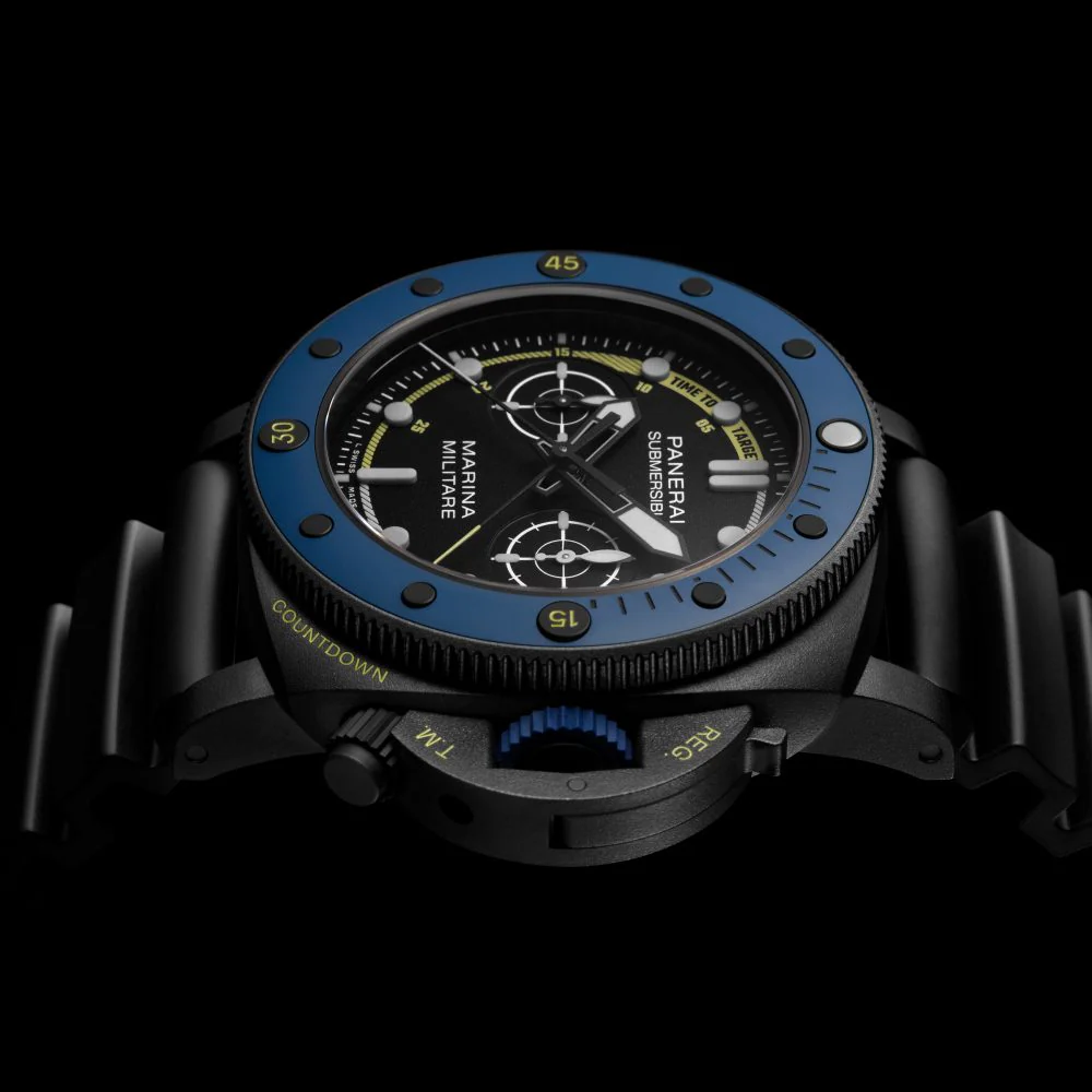 - Titanium with ceramic anti-clockwise rotating bezel with graduated scale