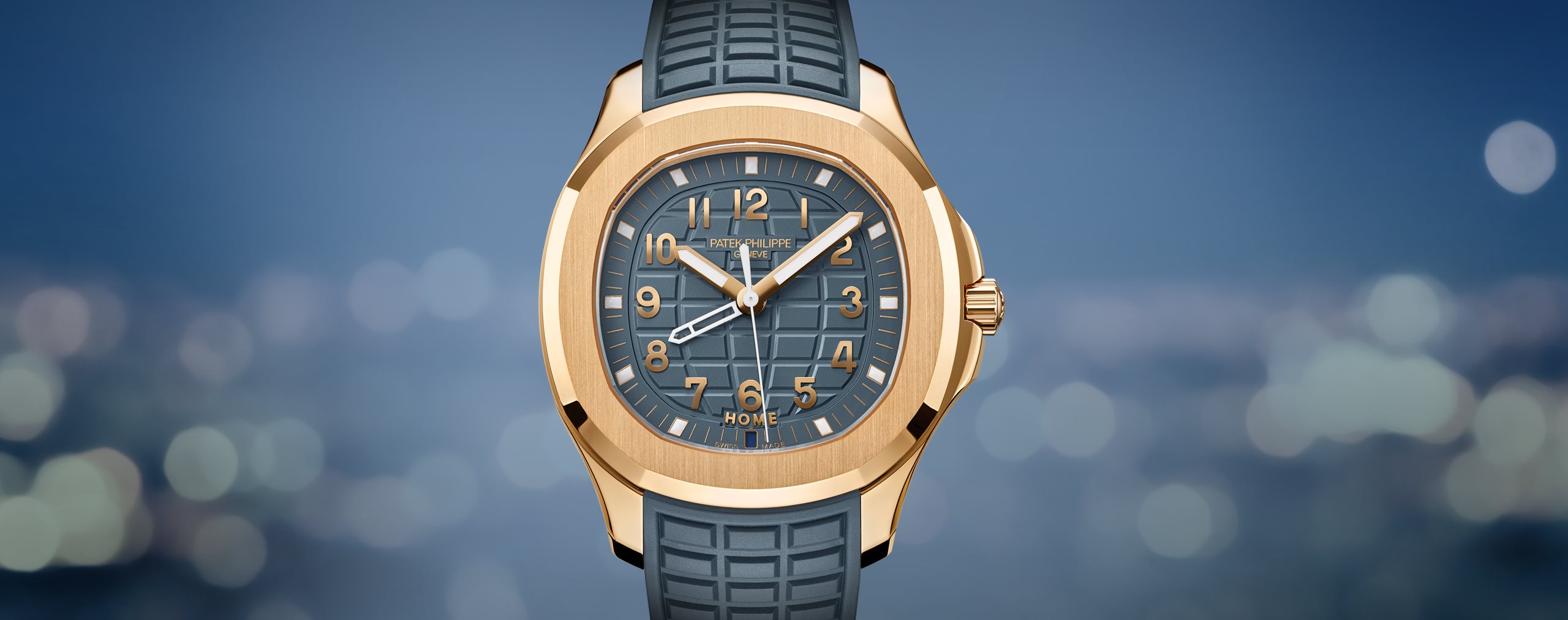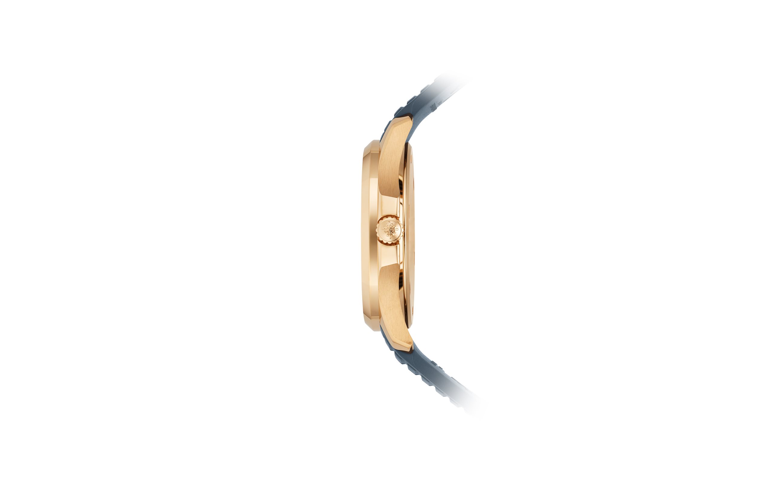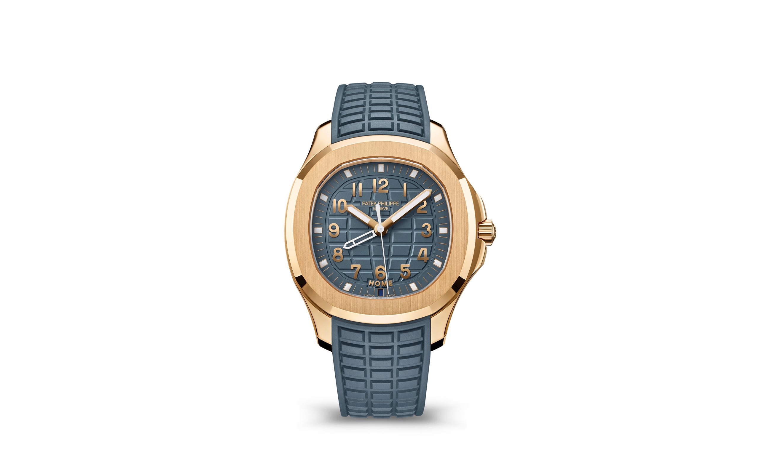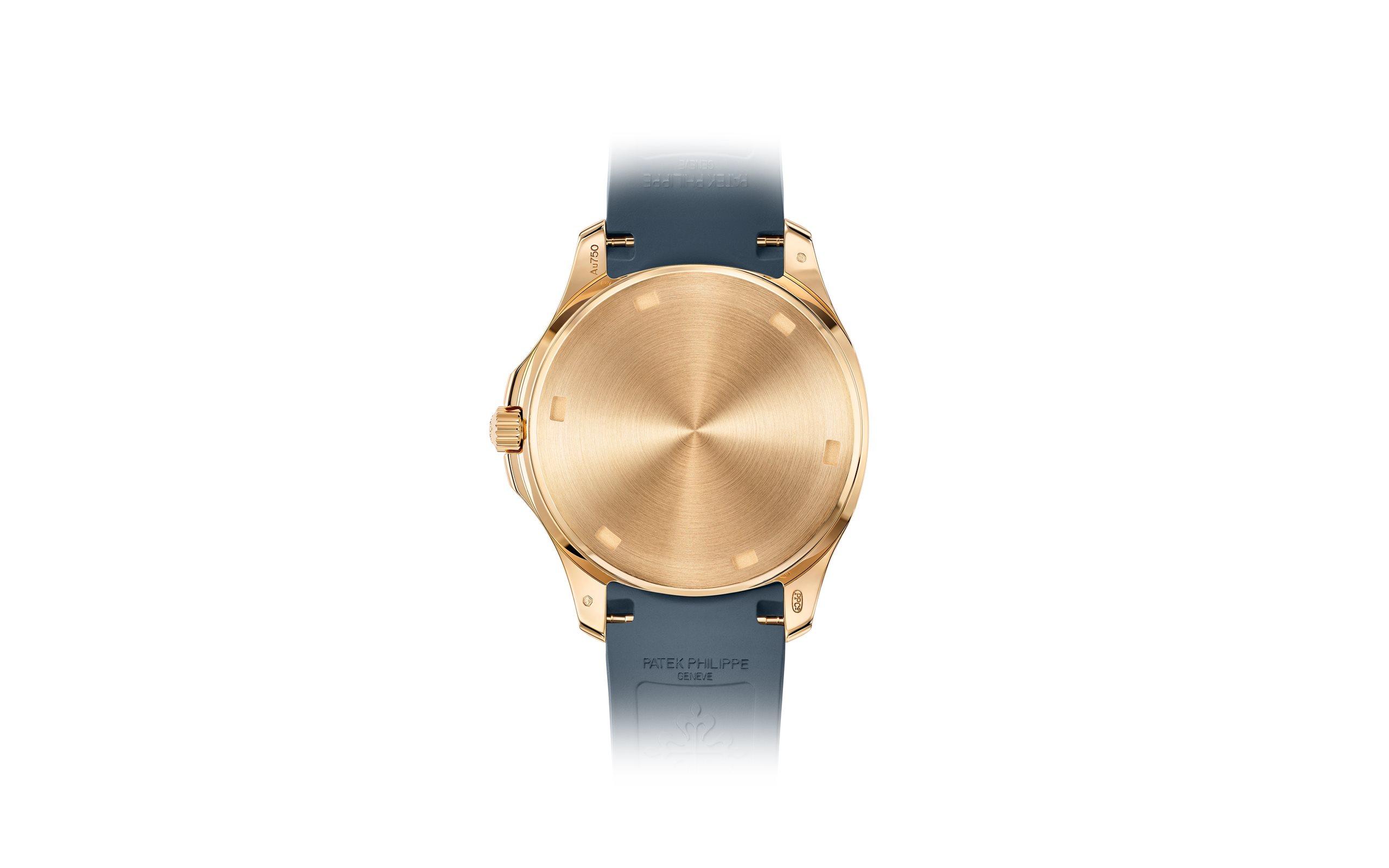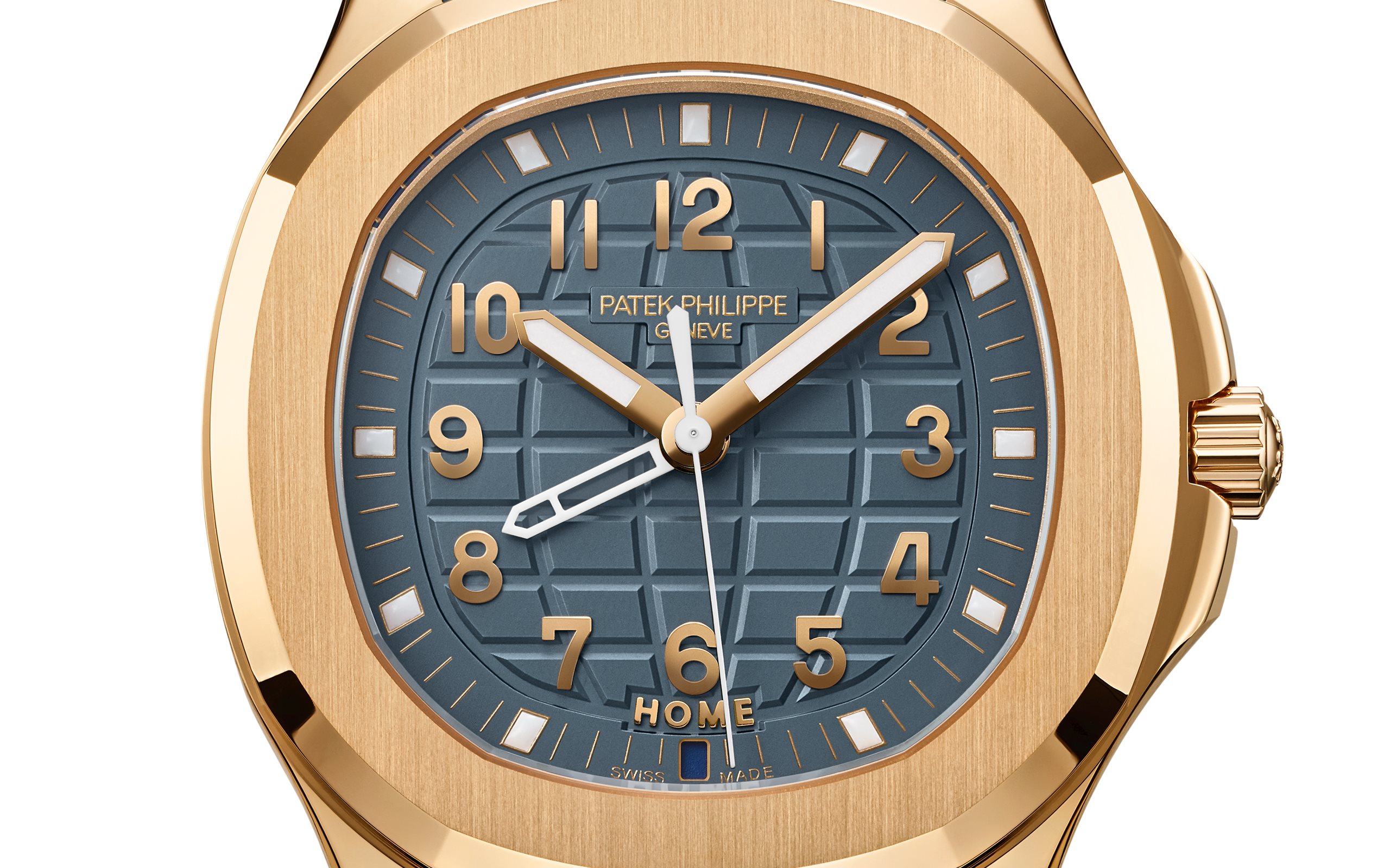 - Opaline blue-gray, embossed Aquanaut pattern, rose gold applied numerals
