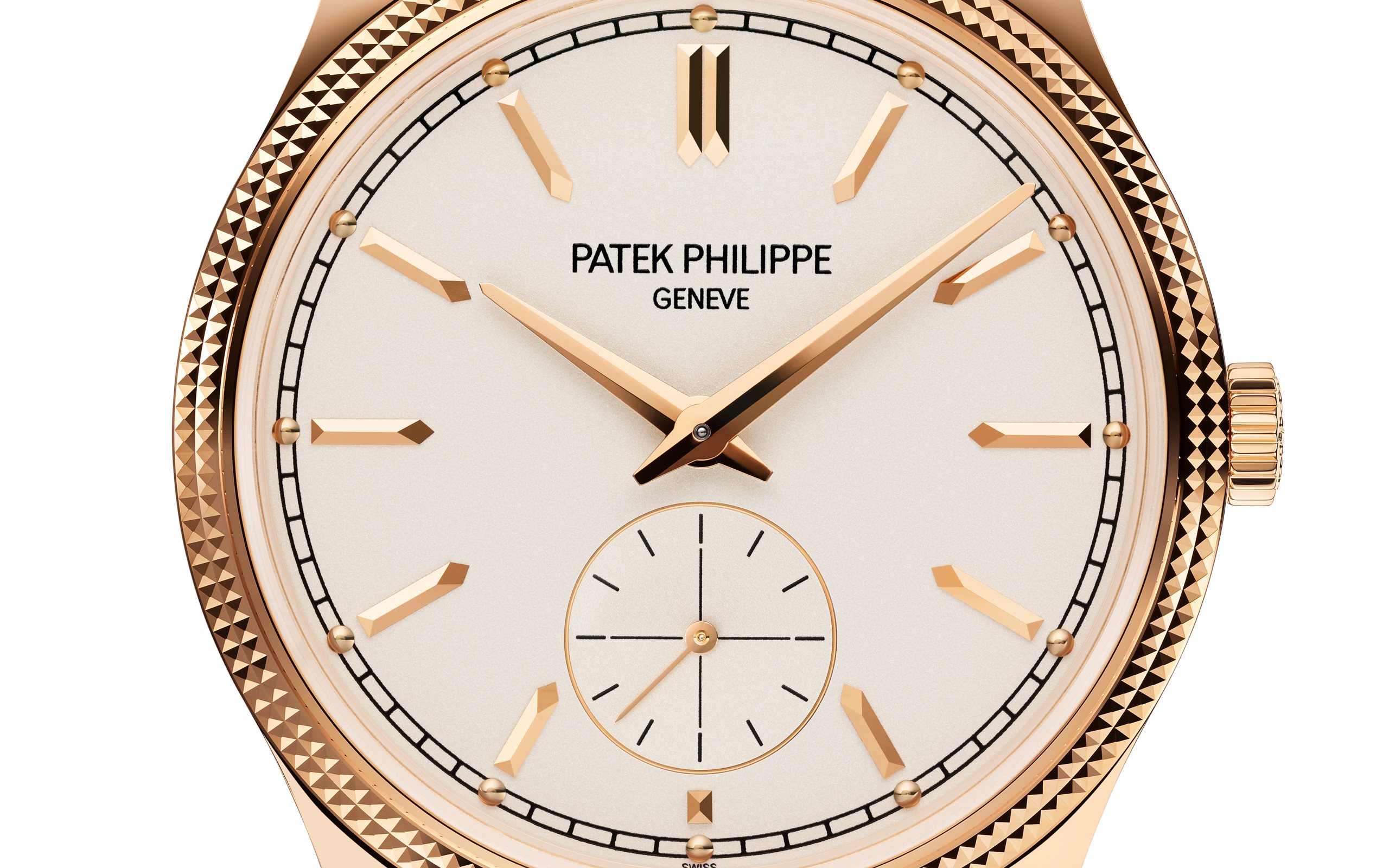 Patek Philippe gives fresh momentum to the emblematic Calatrava model featuring a guilloched hobnail pattern also known as Clous de Paris by treating it to a slightly larger diameter and a design reinterpreted in a contemporary spirit. The faceted applied rose gold hour-markers, combined with dauphine-style hours/minutes hands, create a sleek and timeless dial aesthetic. The elegantly refined rose gold case houses the new manually wound movement 30-255 PS with a 65-hour power reserve.