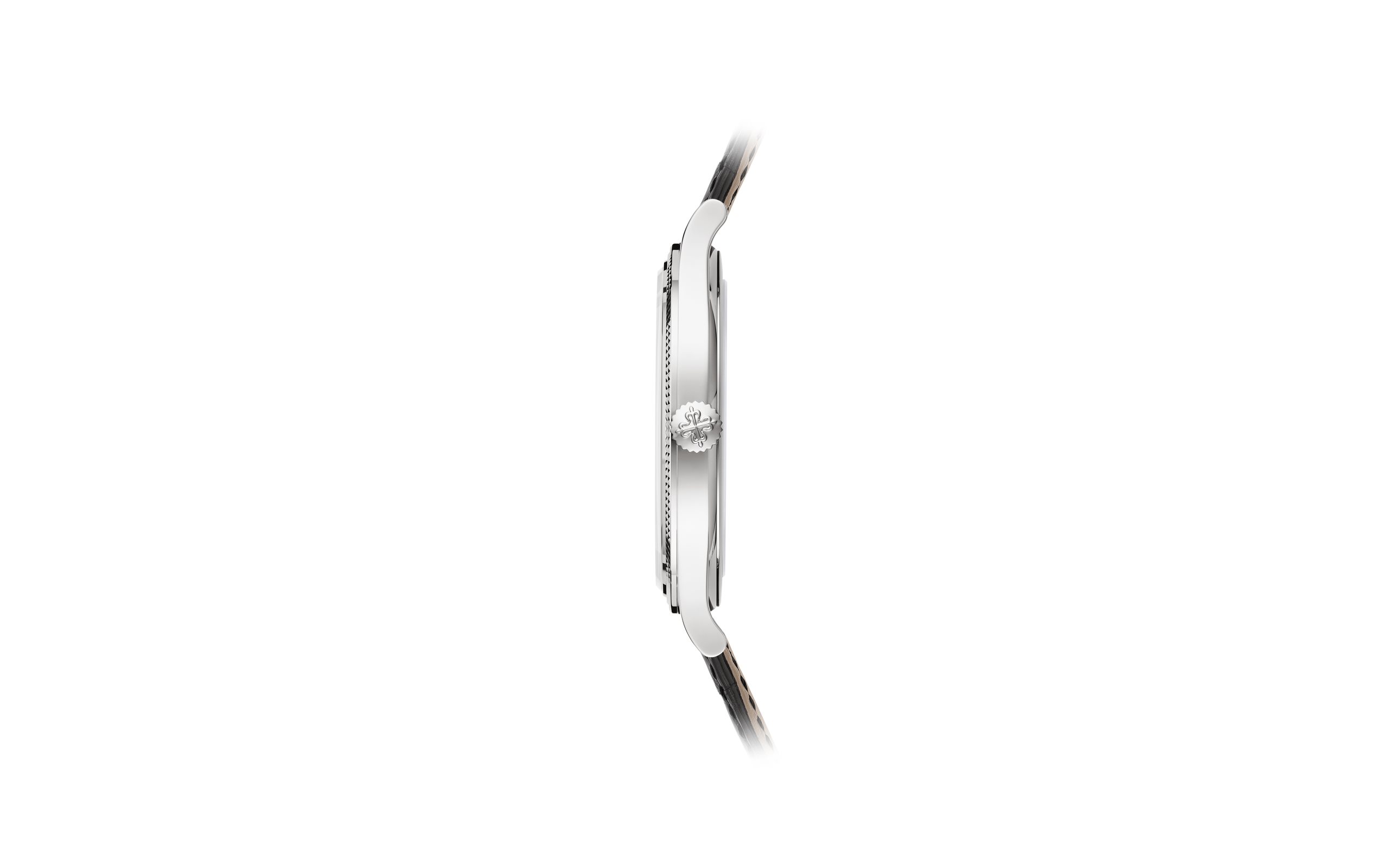 Patek Philippe gives fresh momentum to the emblematic Calatrava model featuring a guilloched hobnail pattern also known as Clous de Paris by treating it to a slightly larger diameter and a design reinterpreted in a contemporary spirit. The faceted applied white gold hour-markers, combined with dauphine-style hours/minutes hands, create a sleek and timeless dial aesthetic. The elegantly refined white gold case houses the new manually wound movement 30-255 PS with a 65-hour power reserve.