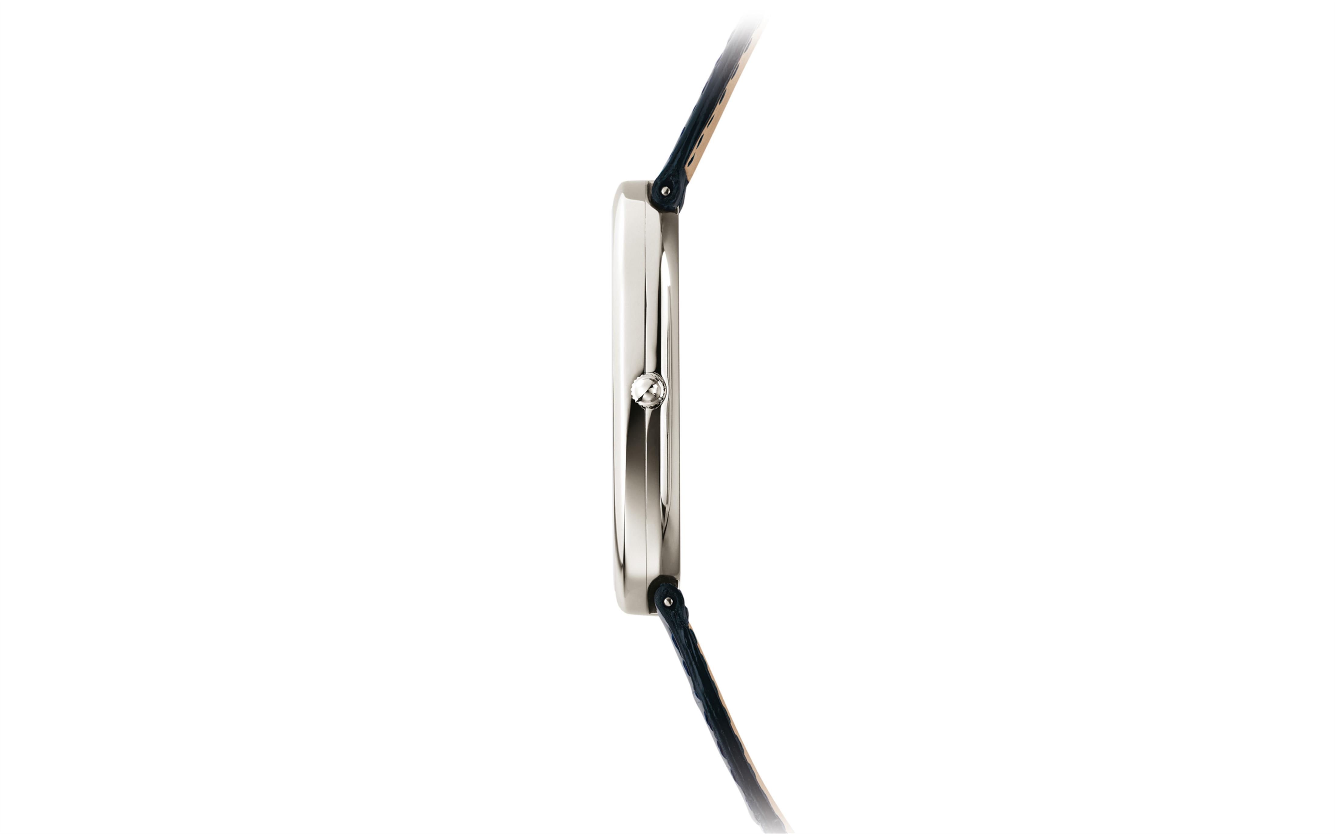 - Strap : Shiny navy blue alligator 15-mm Golden Ellipse prong buckle in platinum
