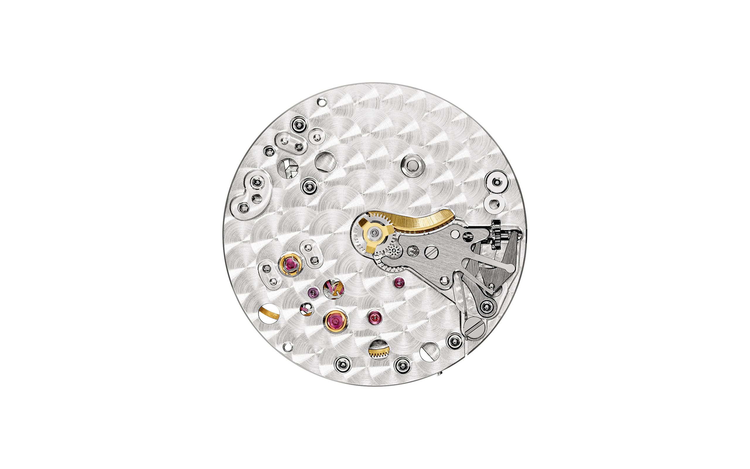 - Paved with 251 diamonds (~0,73 ct) set in a circular pattern and 12 trapeze-cut diamond hour markers (~0,14 ct)