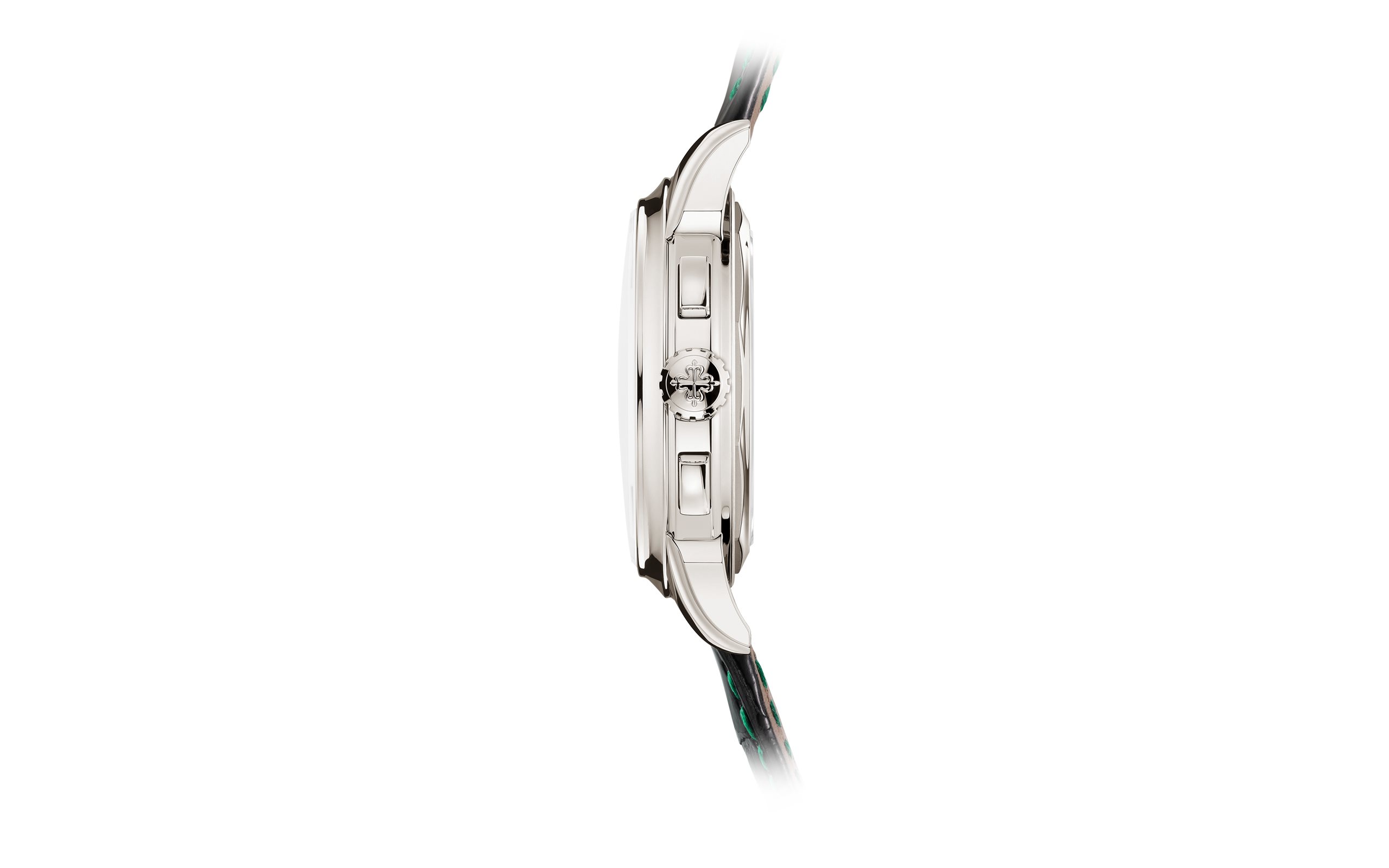 Reference 5270, launched in 2011, is heir to several generations of Patek Philippe perpetual calendar chronographs. The Manufacture reinterprets this timepiece in a model featuring an iconic yet original style. The radiance of platinum E28094 the most precious metal of all yet also the hardest to work with E28094 magnifies the timeless design of the case, with its concave bezel, its elegant two-tier lugs and its correction push-pieces that are satin-brushed on the flanks and polished on top.